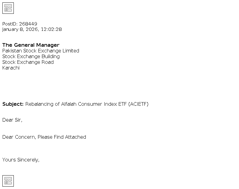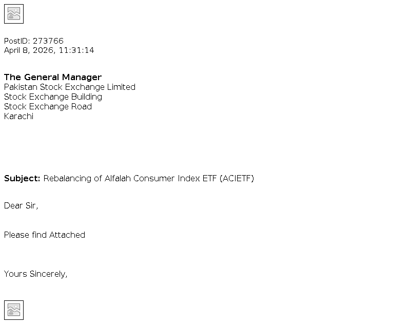 Alfalah Consumer Index Exchange Traded Fund (ACIETF) is an open-end Exchange Traded Fund which aims to track the authorized benchmark index, the Alfalah Consumer Index which would be consumer focused comprise of a maximum 20 stocks. Top companies among pre-defined 7 sectors that have the highest free float based market capitalization and with a 1 year daily average trading volume of 100,000 shares or above on index rebalancing and/or Addition/deletion dates i.e. 30th June and 31st December of each year. Maximum weight of a single stock in the index will be up to 10%. Click for further details.