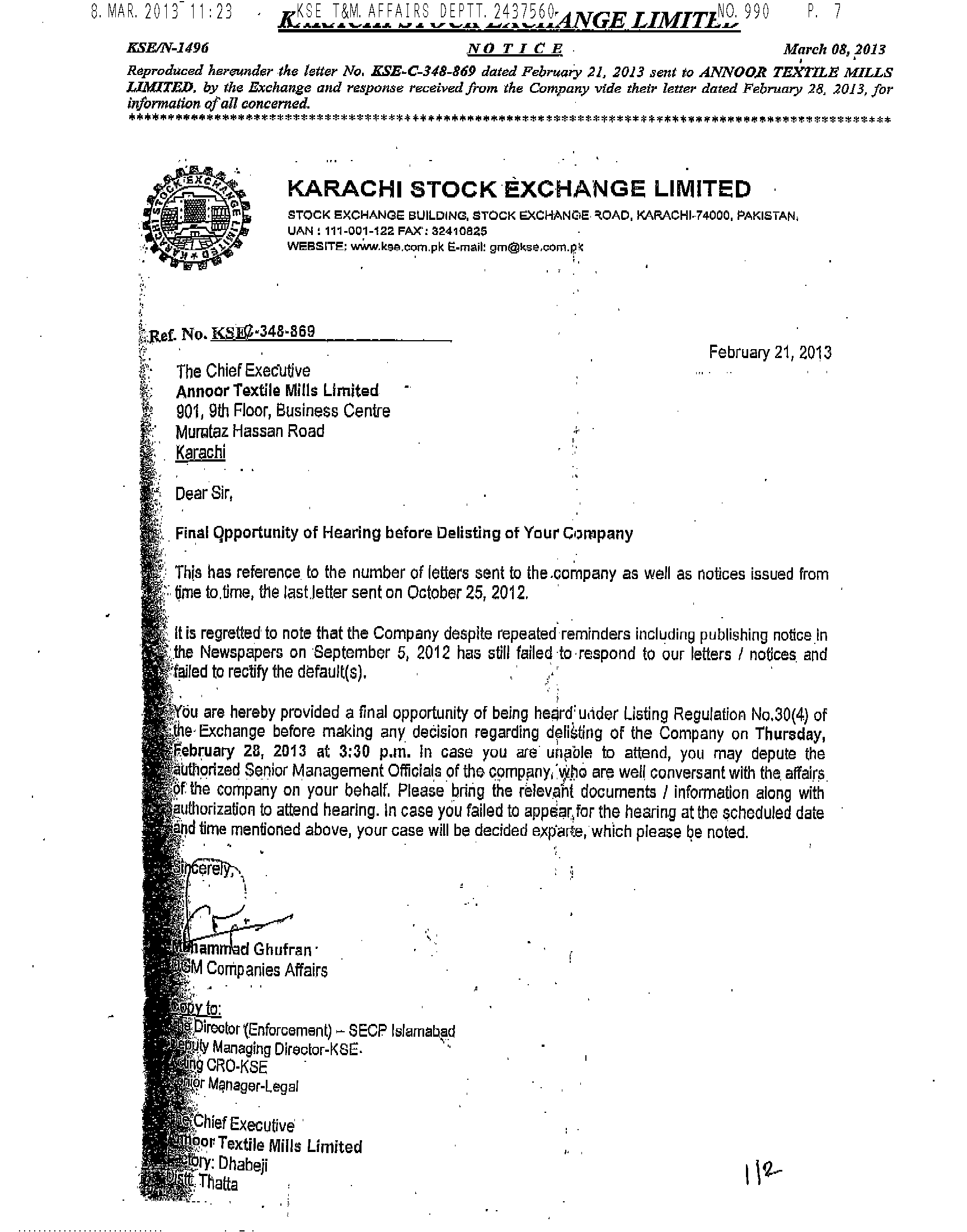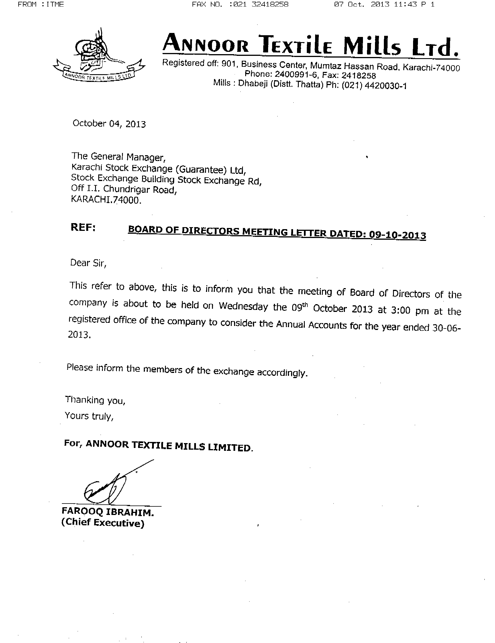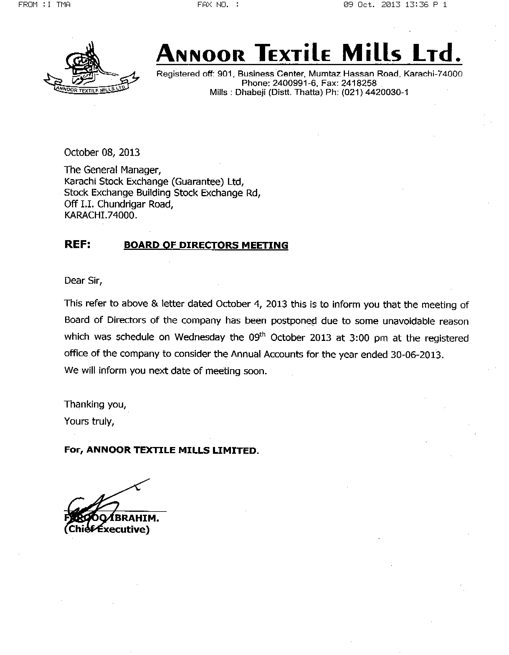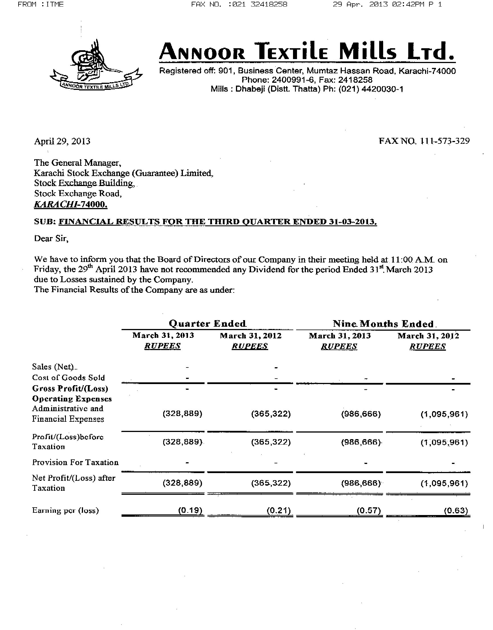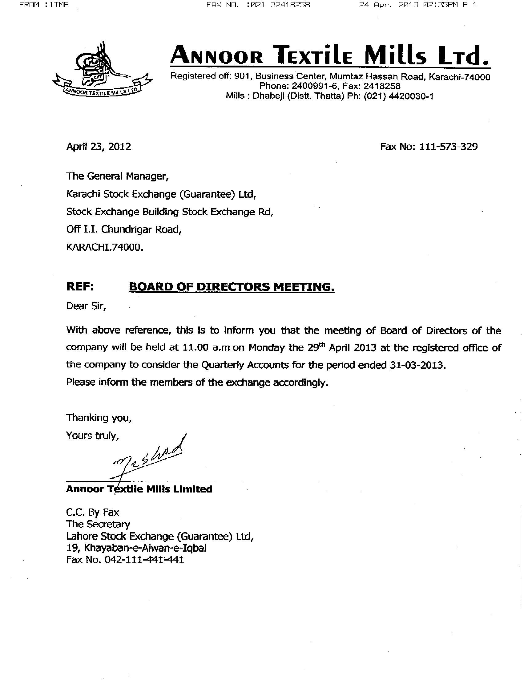 Annor Textile Mills is engaged in the manufacture of all kinds of yarn in its factory at Thatta.