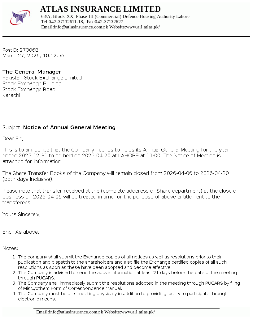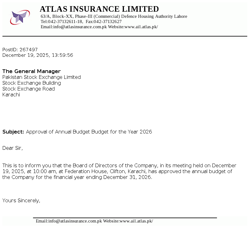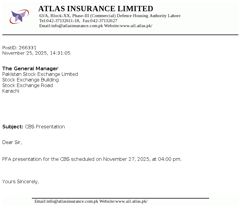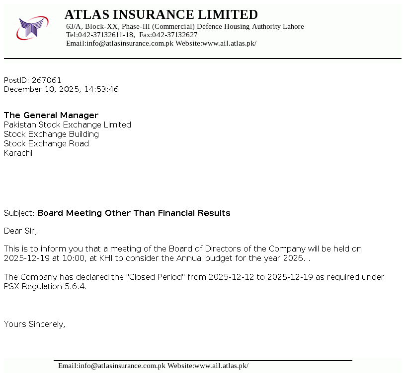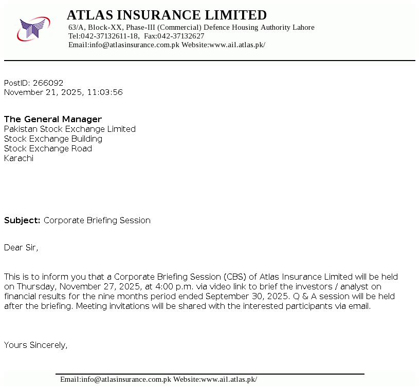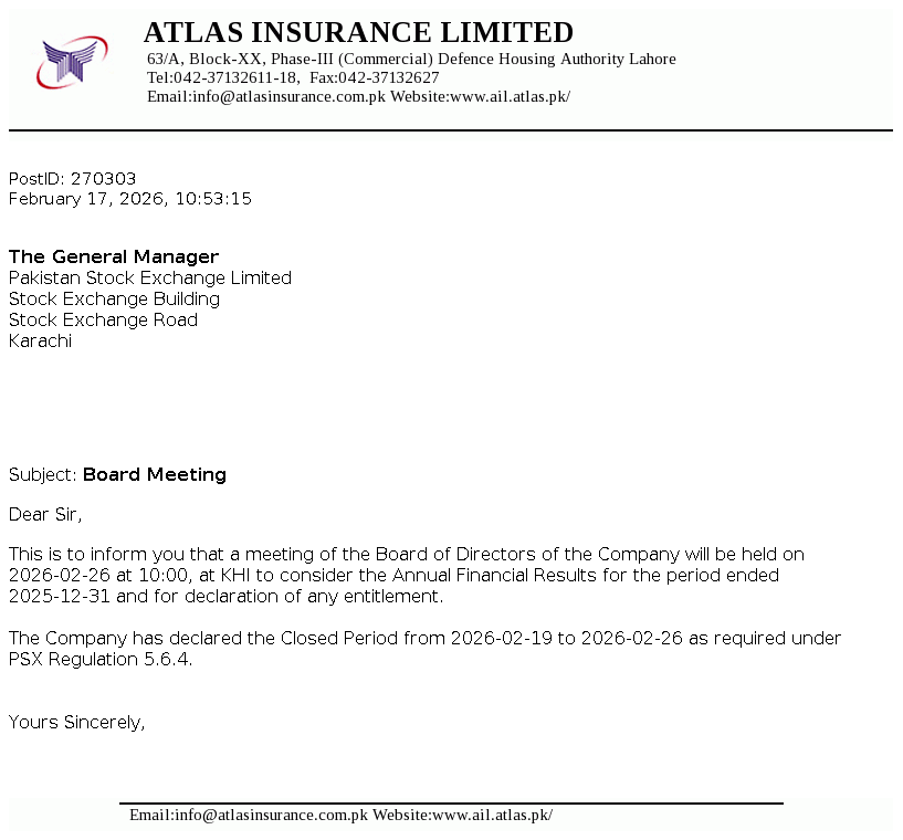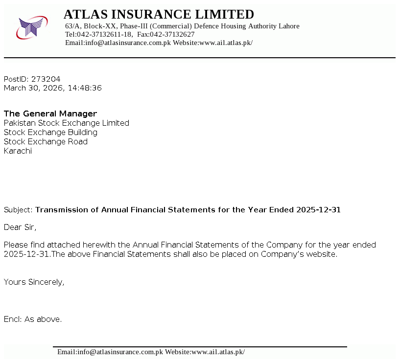 Atlas Insurance Limited was incorporated as a public limited company on September 06, 1934 under the Companies Act, 1913 (now the Companies Act, 2017). The Company is engaged in general insurance business. The Company is a subsidiary of Shirazi Investments (Private) Limited. The Company was granted license to work as Window Takaful Operator (WTO) by the Securities and Exchange Commission of Pakistan (SECP) under Takaful Rules, 2012 to carry on Window Takaful Operations in Pakistan.