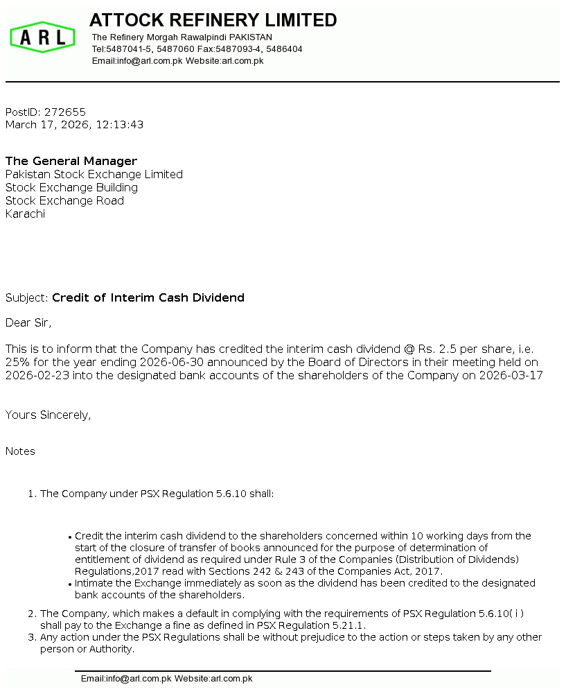 | Mar 06, 2026 | Rs. 2.50 | - |