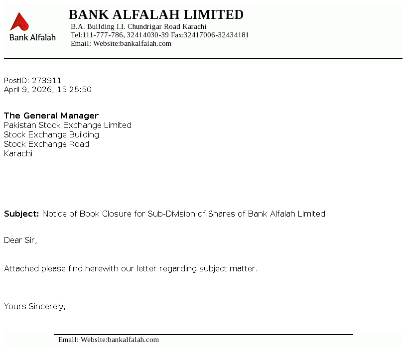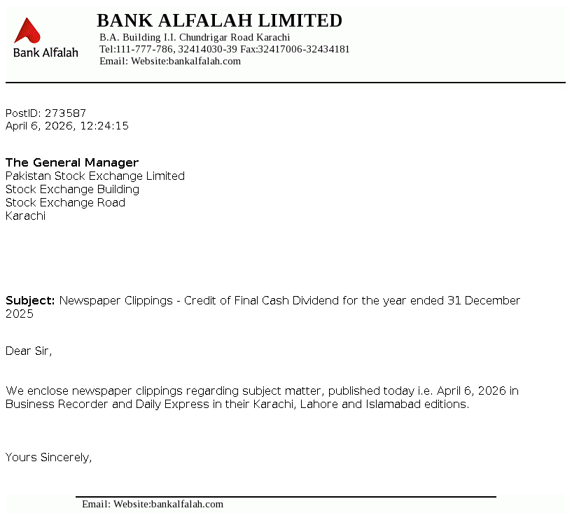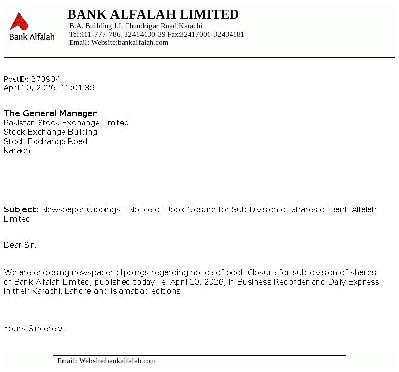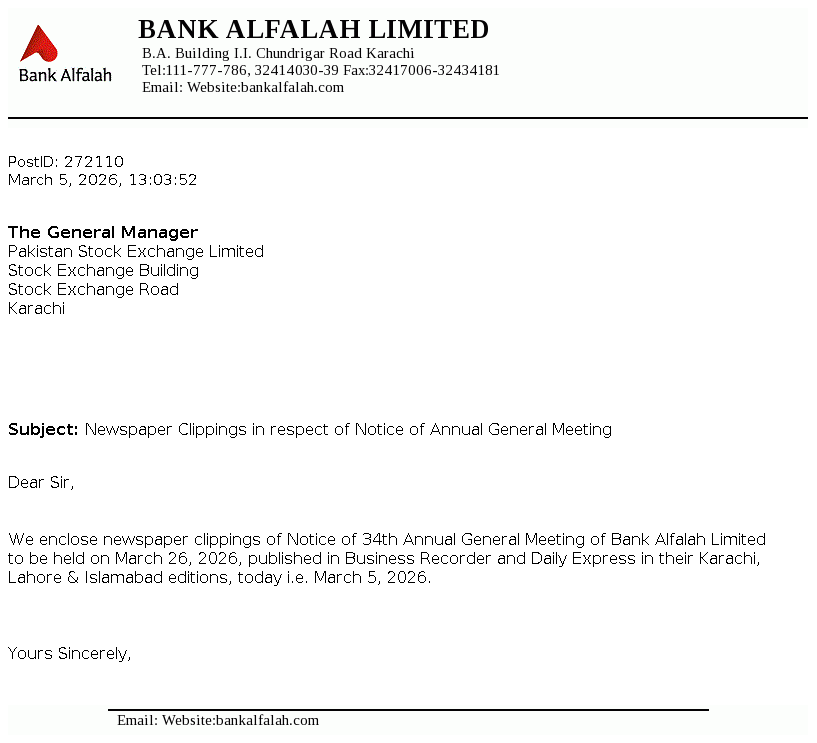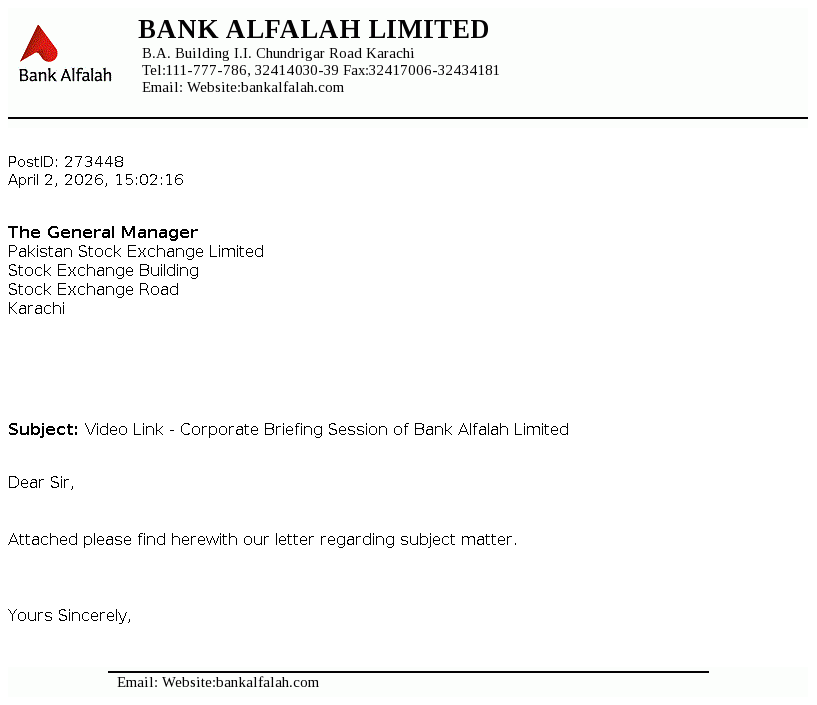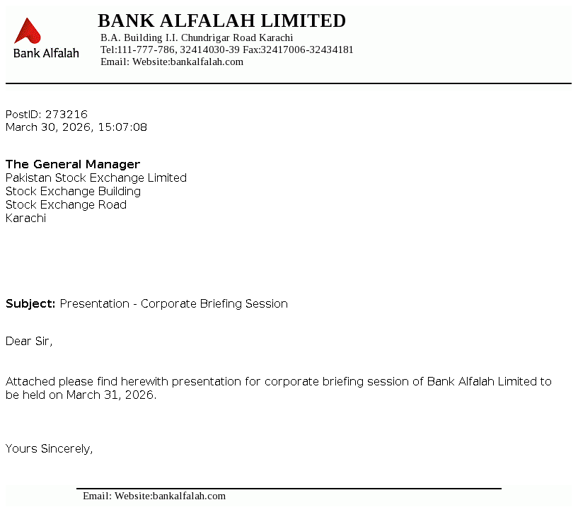 Bank Alfalah Limited is a banking company incorporated in Pakistan on June 21, 1992 as a public limited company. It commenced its banking operations on November 1, 1992. The Bank is engaged in banking services as described in the Banking Companies Ordinance, 1962.
