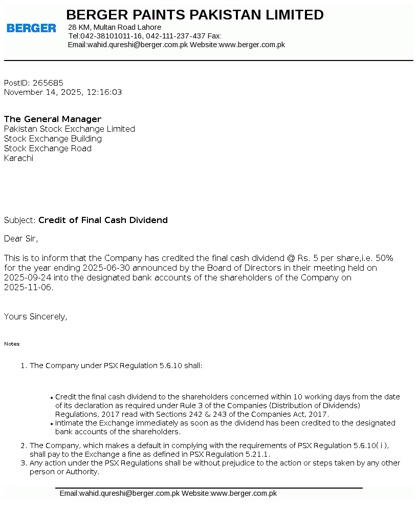 | Oct 17, 2025 | Rs. 5.00 | - |