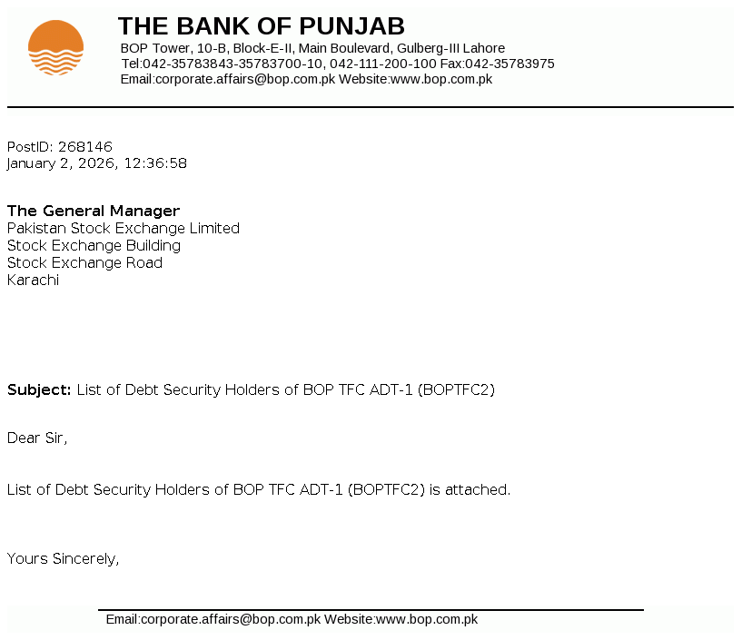 BOP Tower, 10-B, Block-E-II, Main Boulevard, Gulberg-III, Lahore