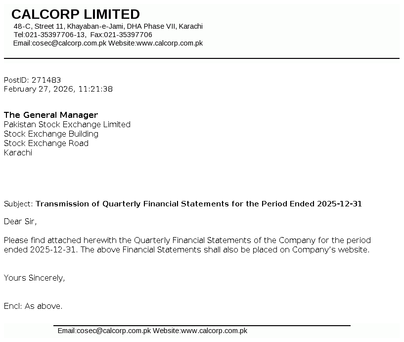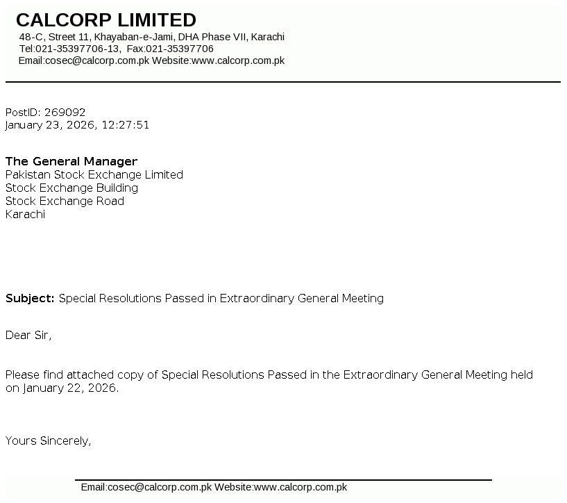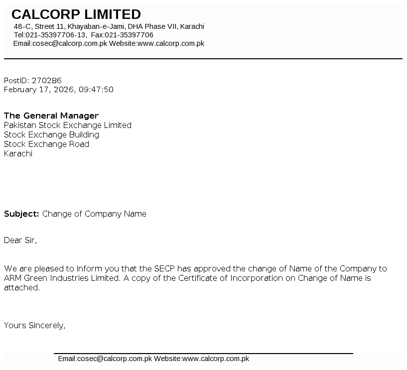 F.D Registrar Services (SMC-Pvt) Limited 17th Floor, Saima Trade A I.I Chundrigar Road Karachi