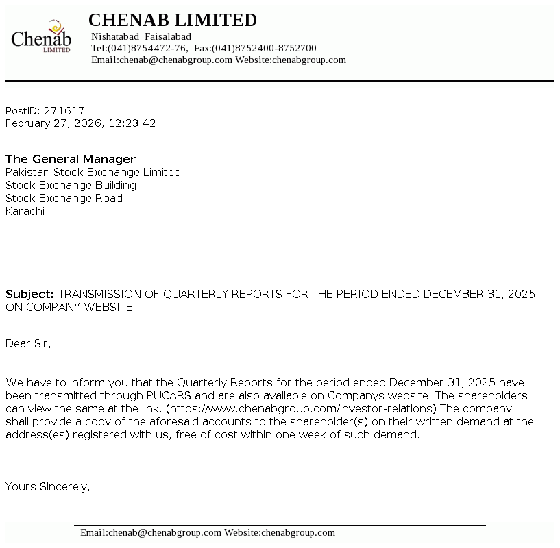 F.D. Registrar Services (SMC-Pvt.) Ltd 1705, 17th Floor, Saima Trade Tower-A, I.I. Chundrigar Road, Karachi