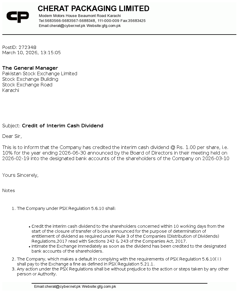 | Mar 02, 2026 | Rs. 1.00 | - |