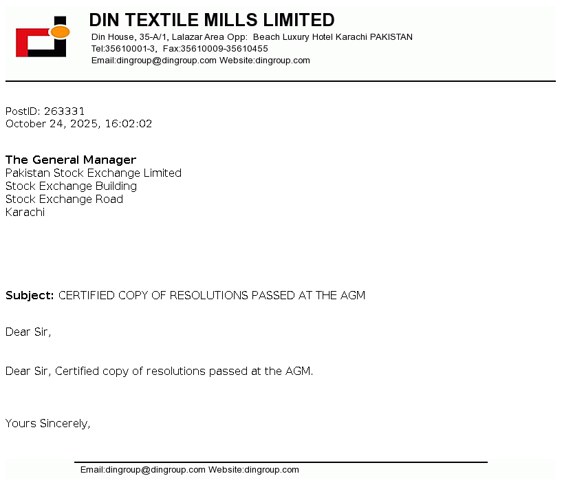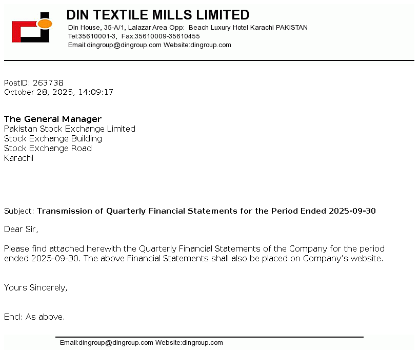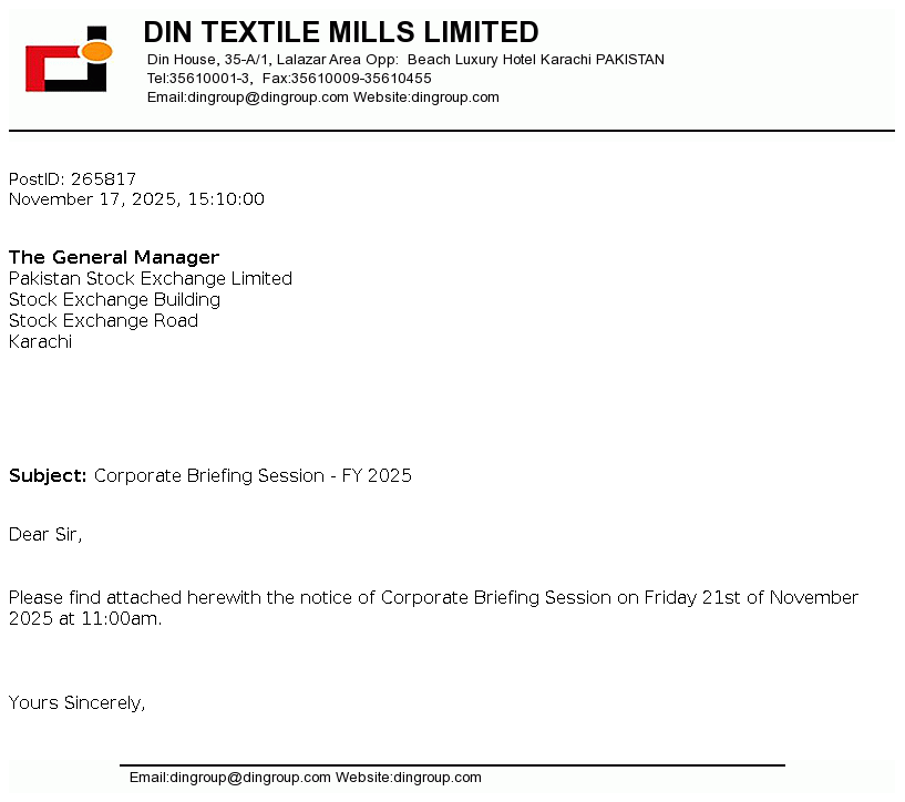 Din House, 35-A/1, Lalazar Area, Opp: Beach Luxury Hotel, M.T. Khan Road, Karachi.