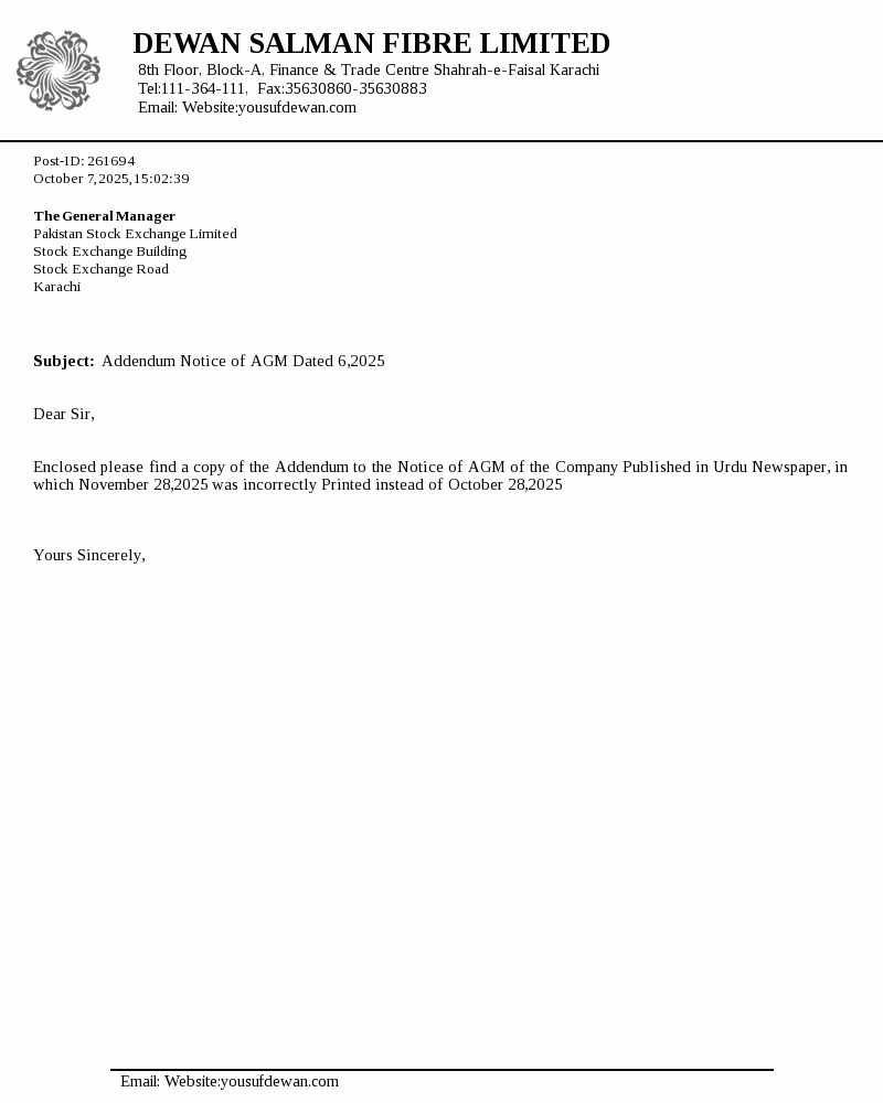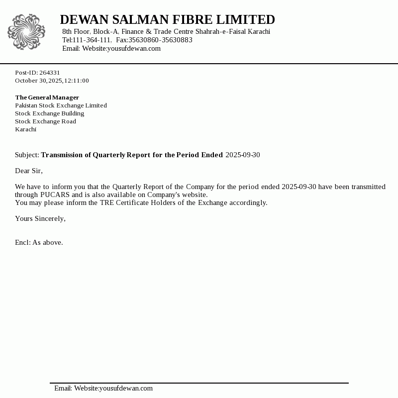 The Company was incorporated in Pakistan on 4 October 1989 under repealed Companies Ordinance 1984, now Companies Act, 2017. It is engaged in manufacturing and sale of polyester, acrylic fibre and tow products.