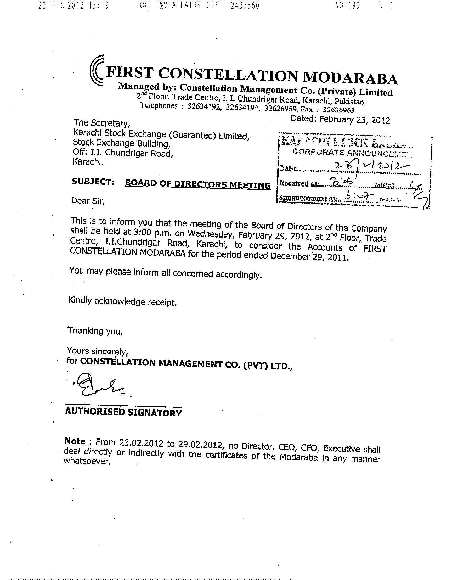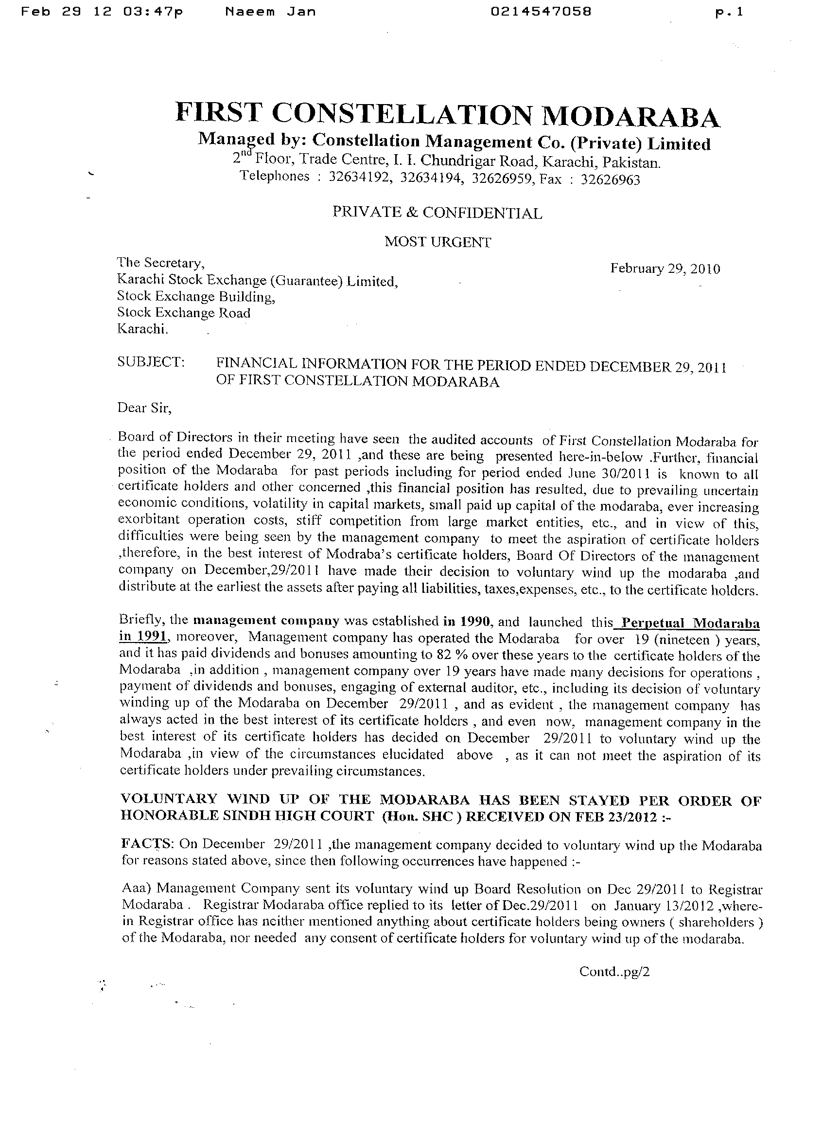 Constellation Modaraba was established in 1991, to undertake running capital financing, money & capital market operations venture captial, leasing, trading etc.