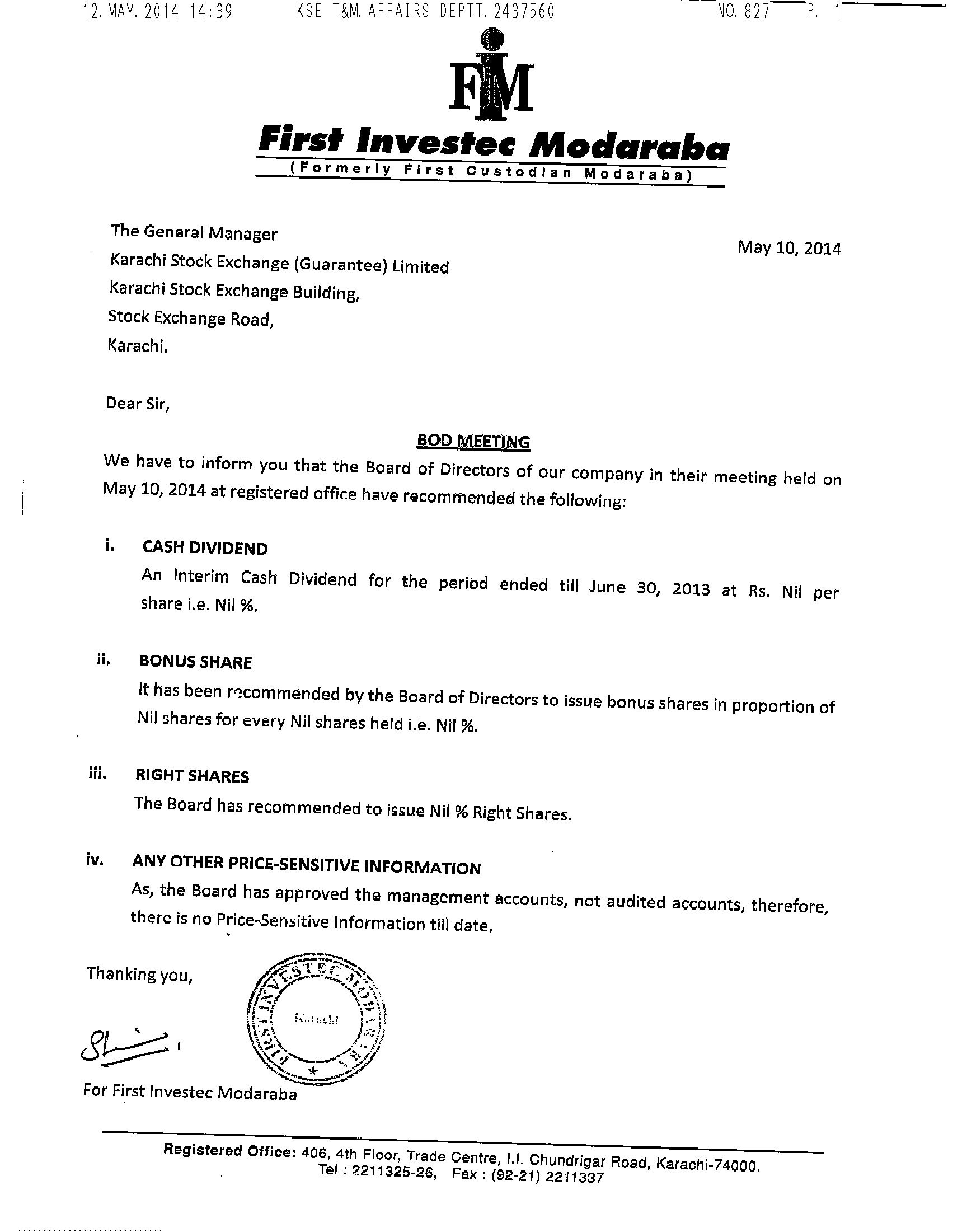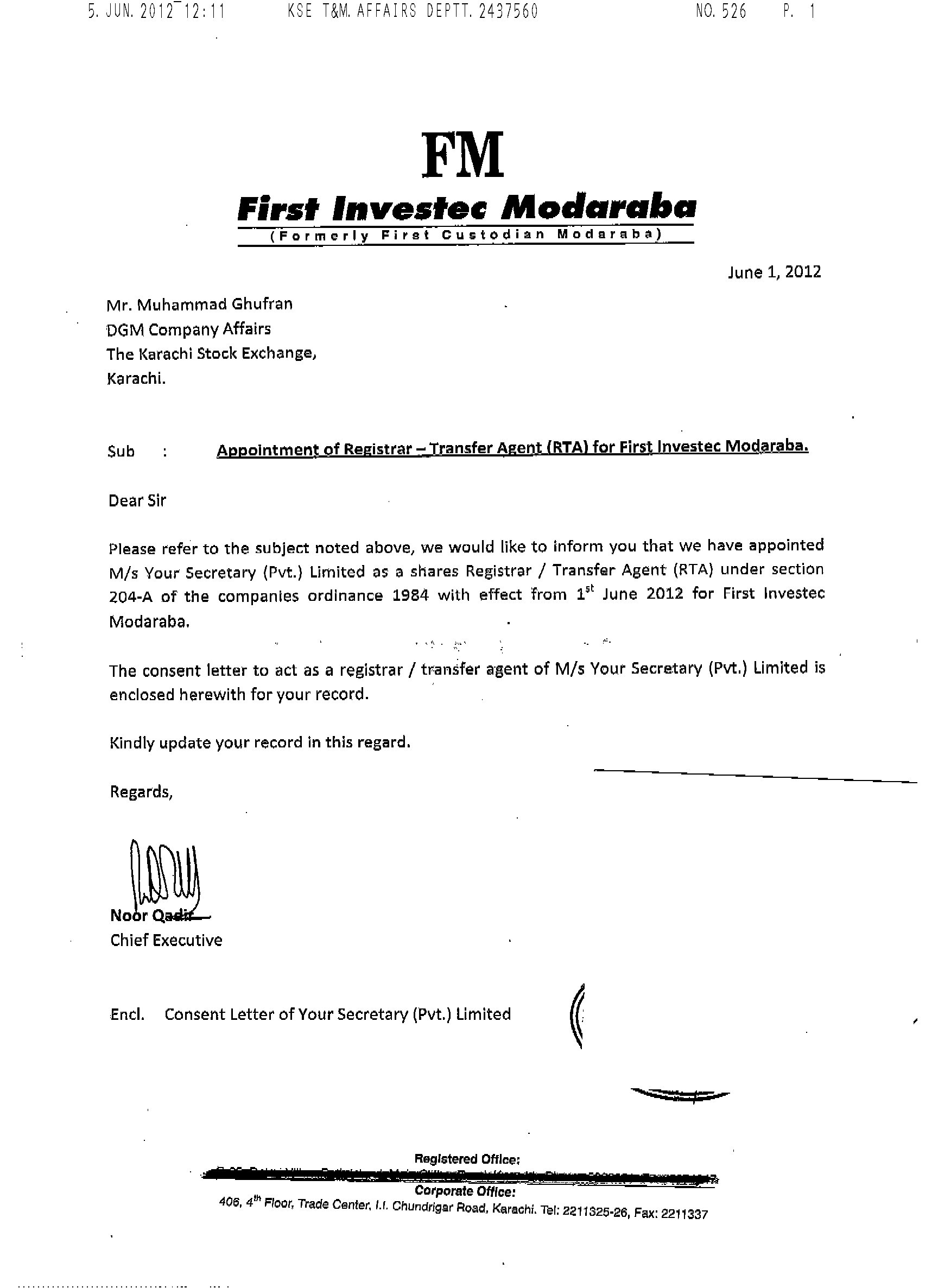 First Investec Modaraba is a multi-purpose perpetual Modaraba was incorporated in Pakistan under the Companies Ordinance, 1984.