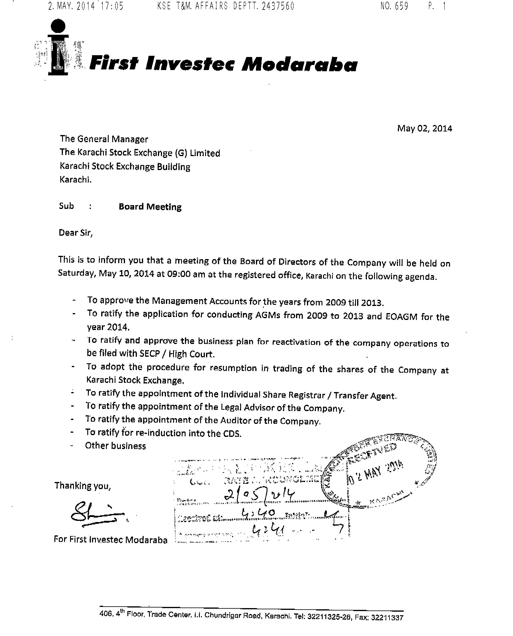 406, 4th Floor, Trade Center I.I. Chundrigar Road Karachi