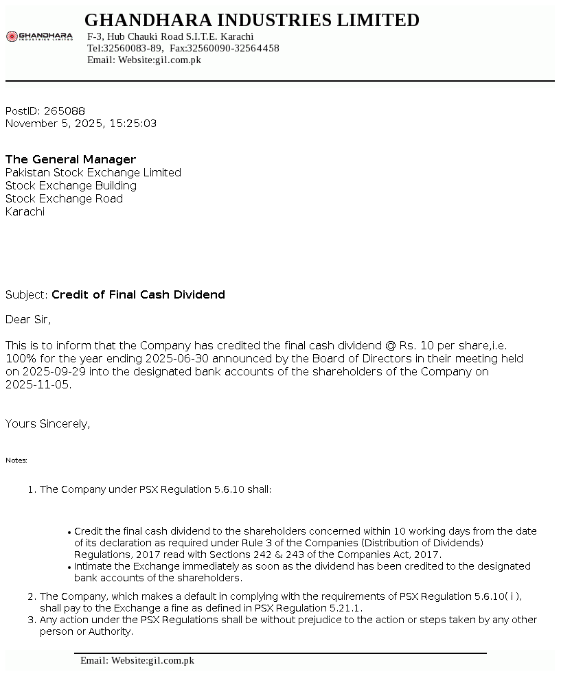 | Oct 15, 2025 | Rs. 10.00 | - |
