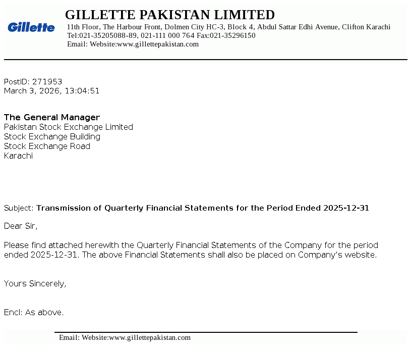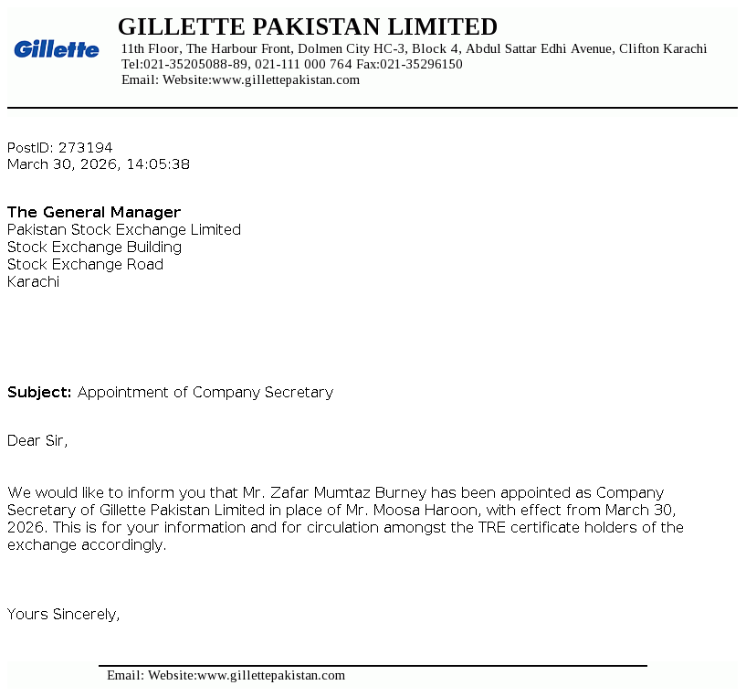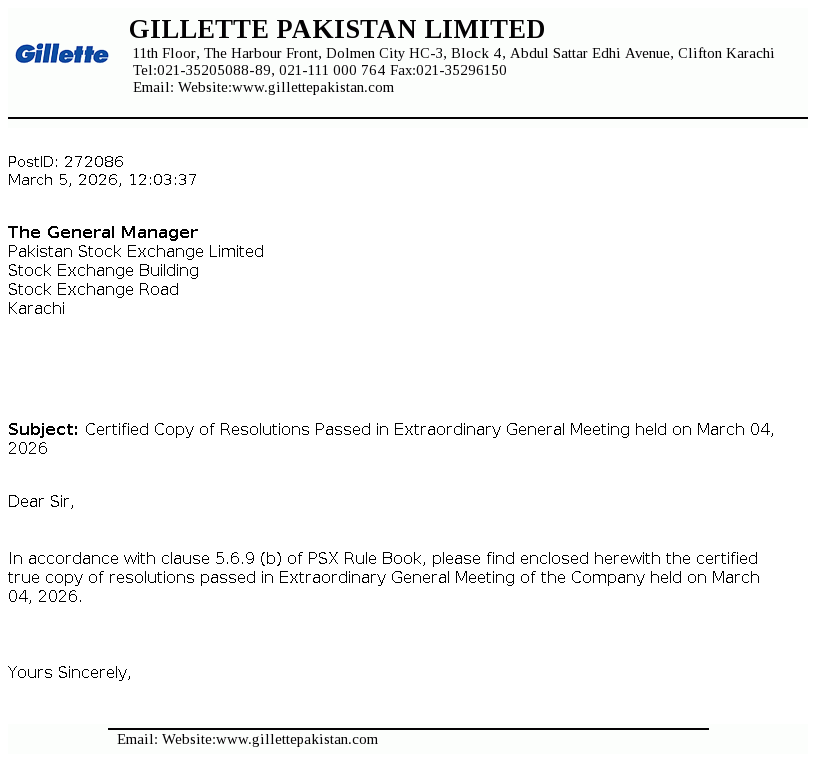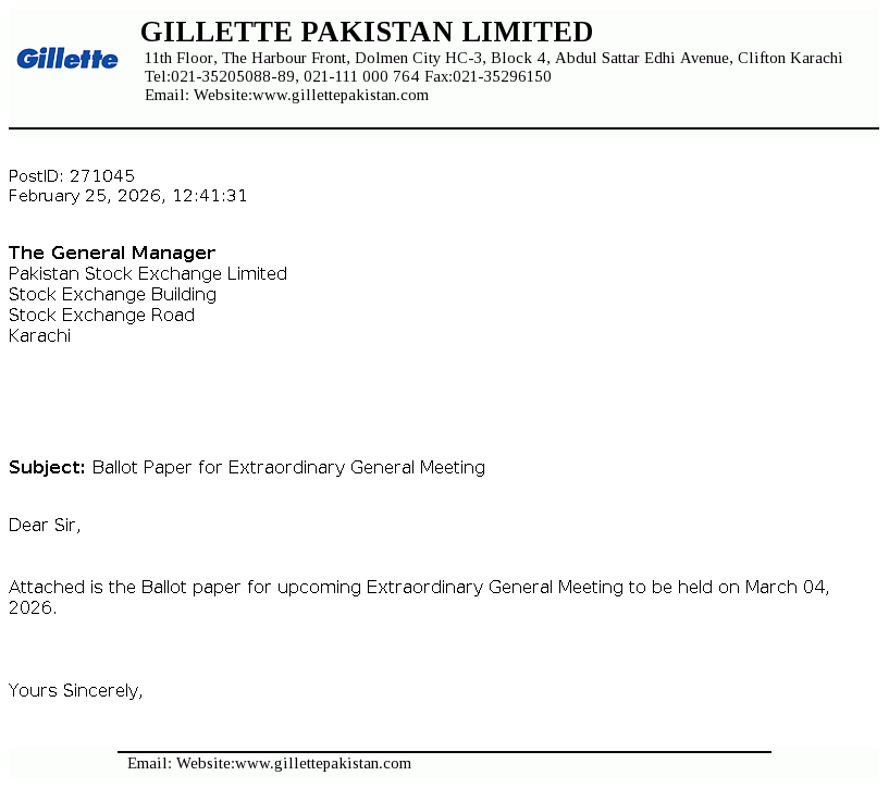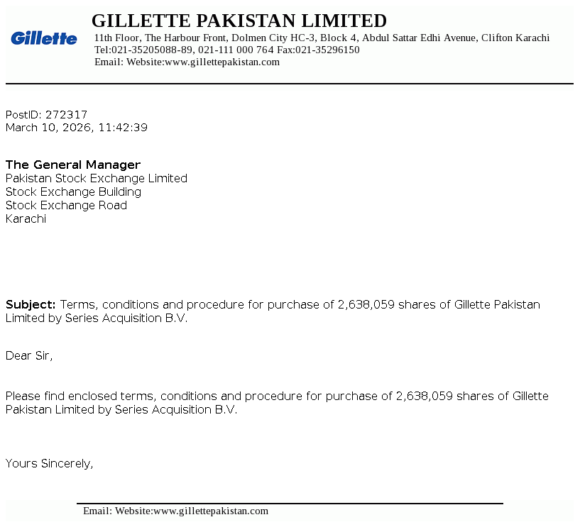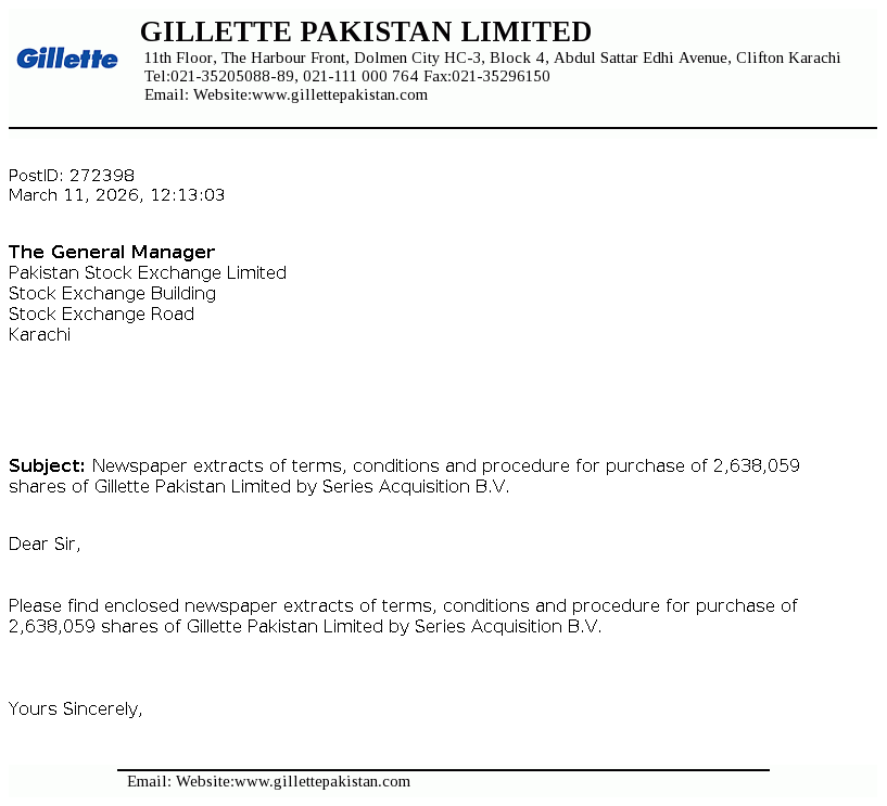 Gillette Pakistan Limited was incorporated on December 9, 1986 as a public limited company under the repealed Companies Ordinance, 1984 (now the Companies Act, 2017) and is a subsidiary of The Series Acquisition B.V. Netherlands, which is a wholly owned subsidiary of The P&G Company, USA. The principal activities of the Company include marketing and selling of blades and razors.