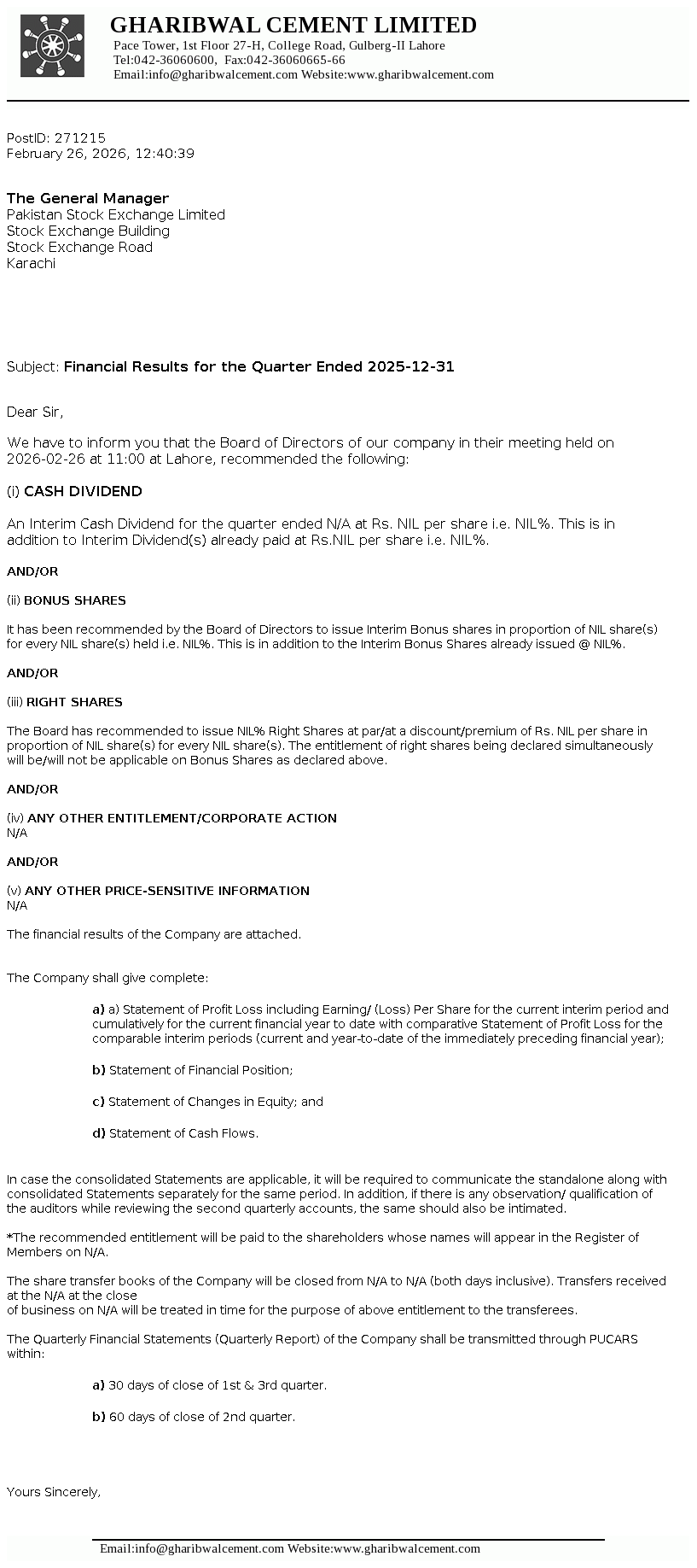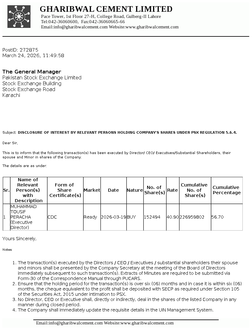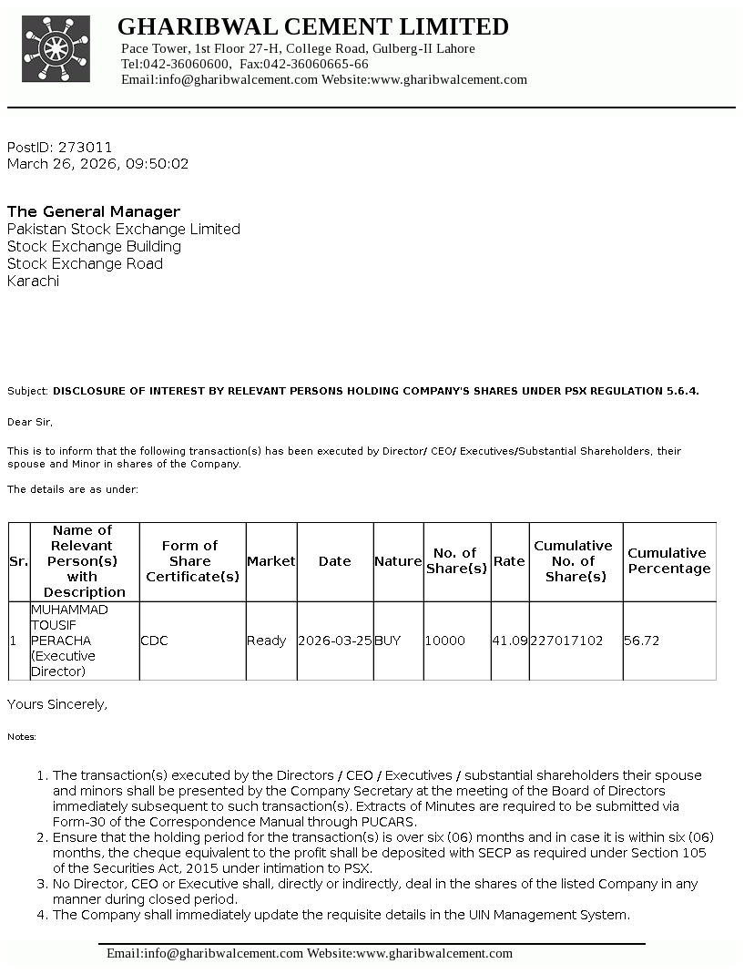 The Company was incorporated in Pakistan on December 29, 1960 as a Public Limited Company. It is principally engaged in production and sale of cement.