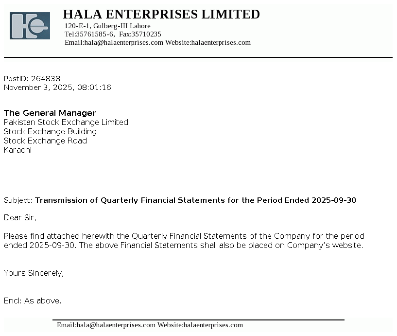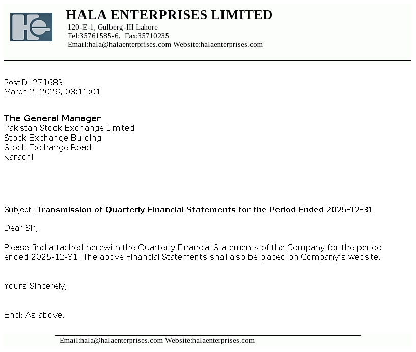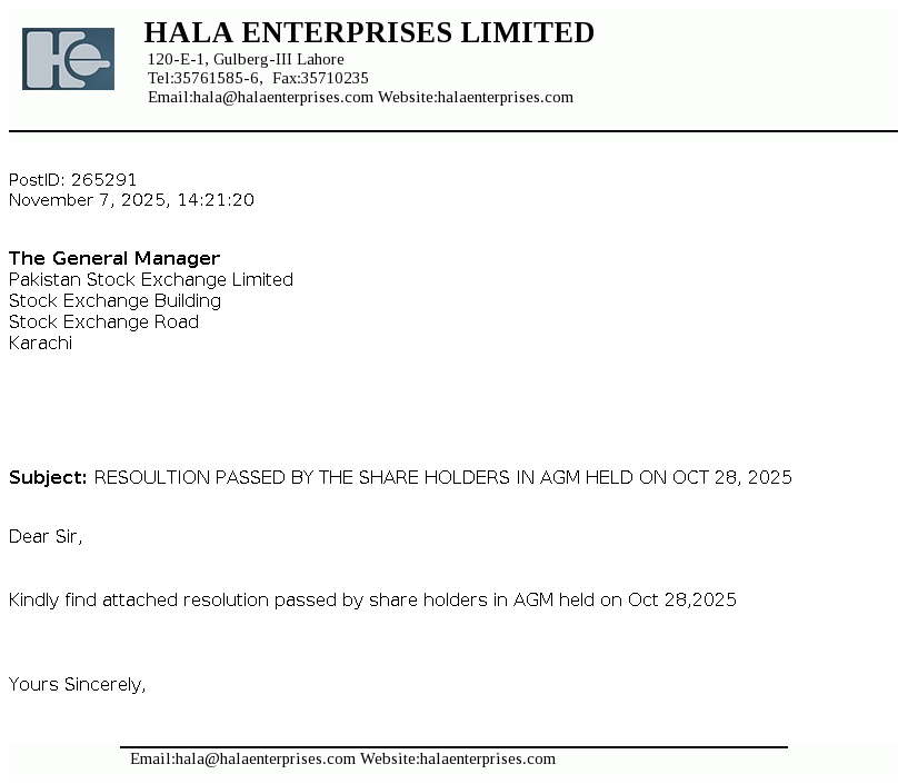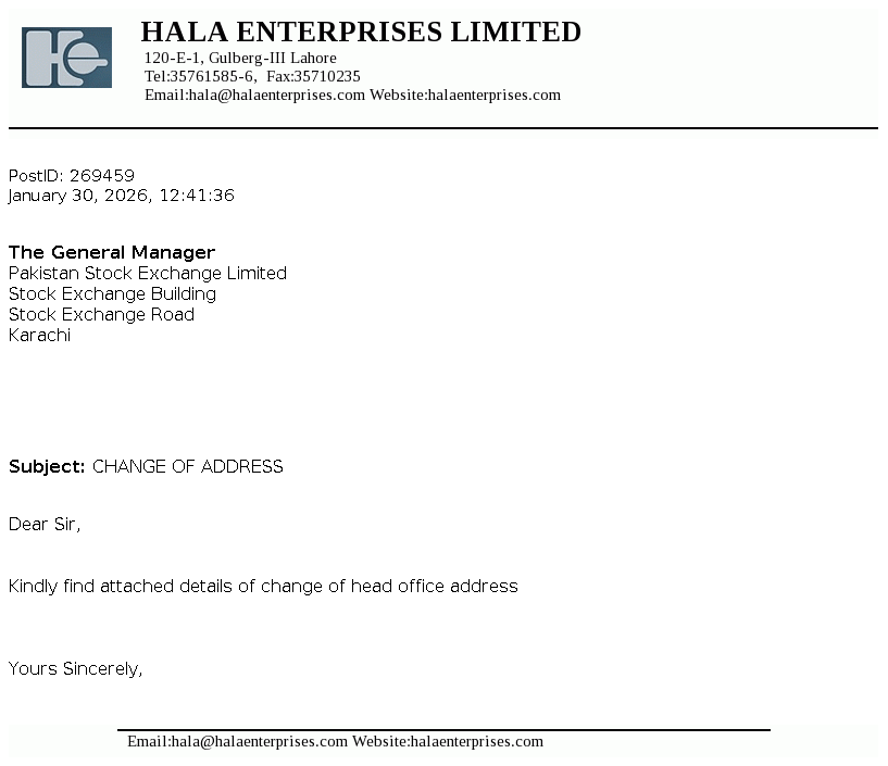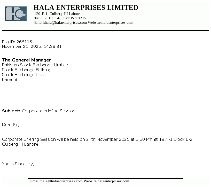 Hala Enterprises Limited was incorporated as a Private Limited Company and was subsequently converted into a public limited company. The Company is primarily engaged in manufacturing and sale of terry towels, kitchen towels and terry cloth.
