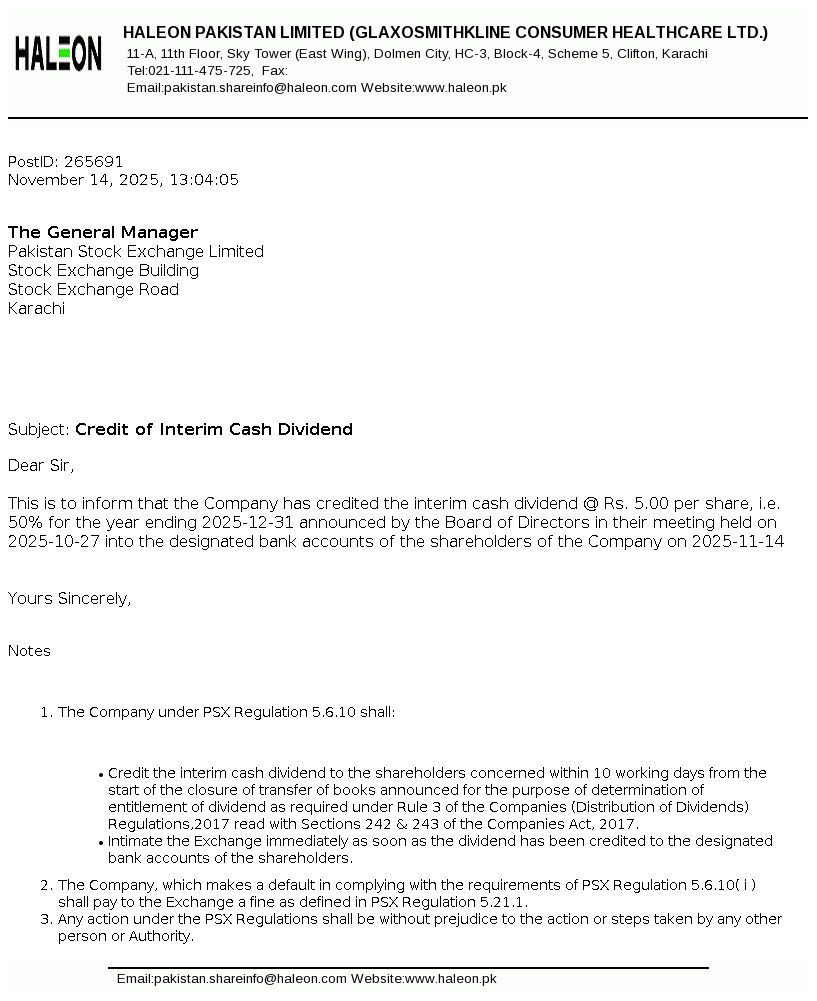 | Nov 04, 2025 | Rs. 5.00 | - |