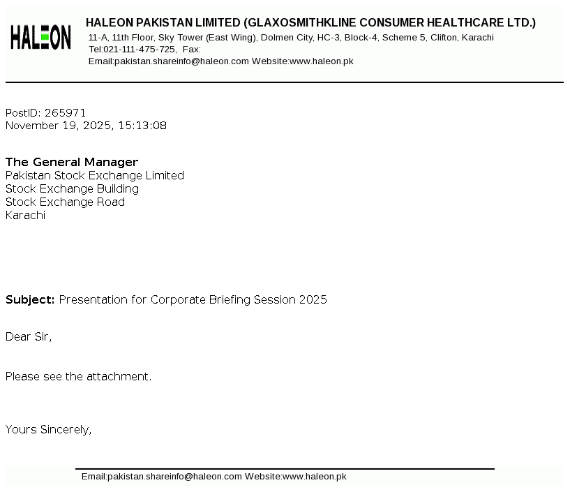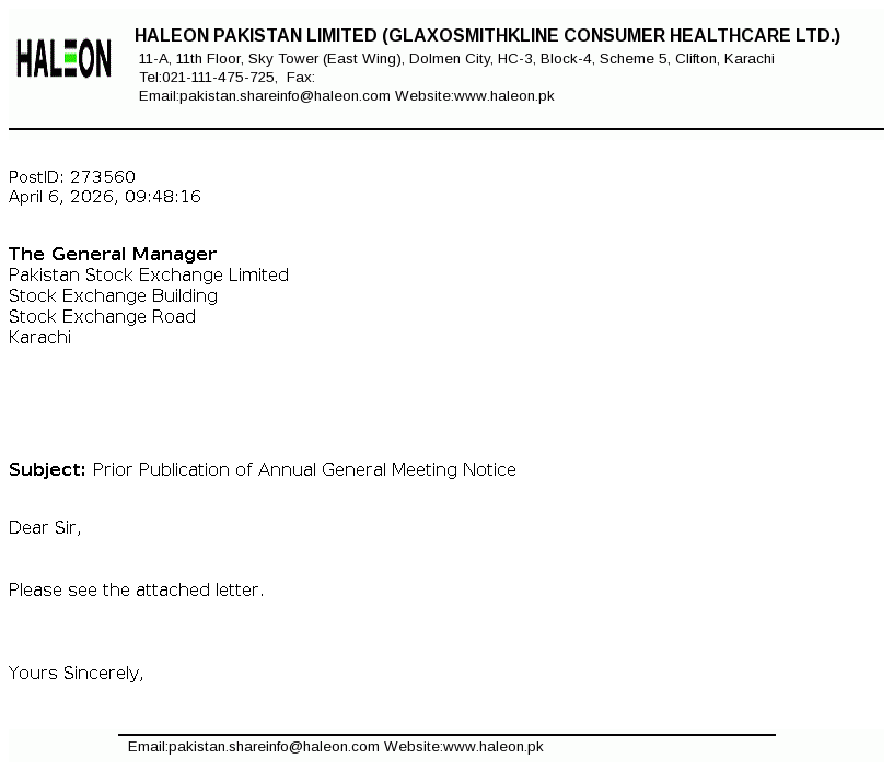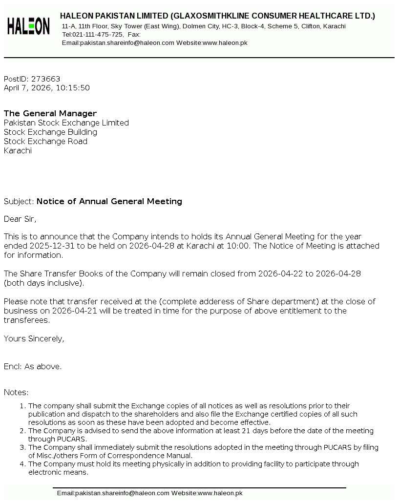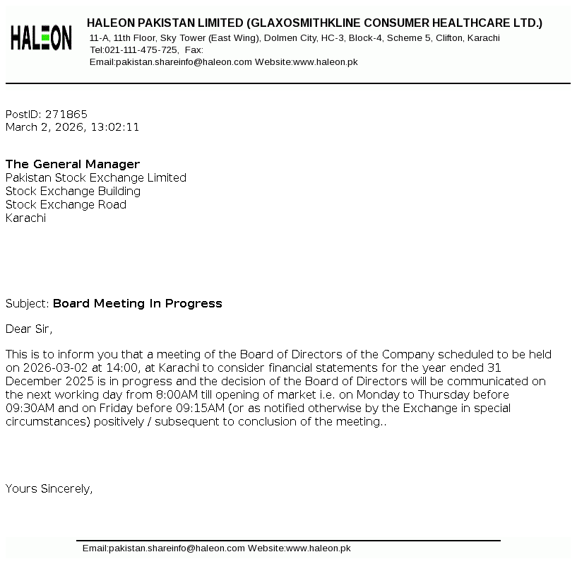 Haleon Pakistan Limited (formerly known as GlaxoSmithKline Consumer Healthcare Pakistan Limited) was incorporated in Pakistan as a public listed company under the provisions of the repealed Companies Ordinance, 1984 (now Companies Act, 2017) on 31 March 2015. The Company is a subsidiary of ‘Haleon Netherlands B.V’. The ultimate parent of the Company is Haleon plc. The Company is inter alia principally engaged in the manufacturing, marketing and sale of consumer healthcare and over the counter health products.