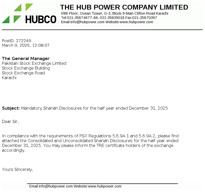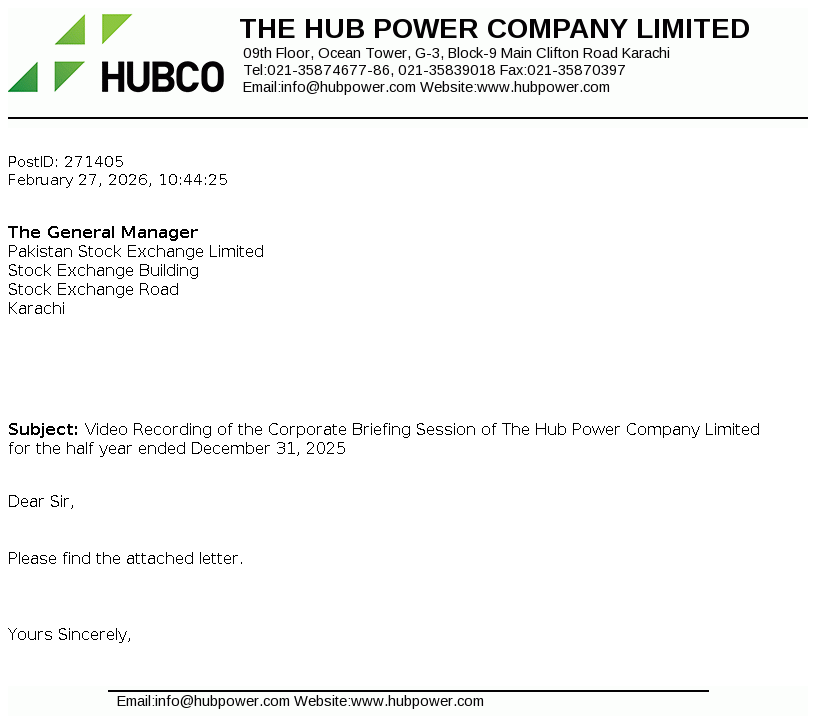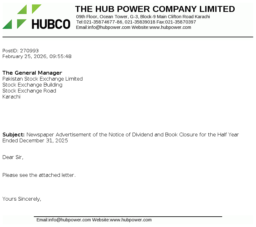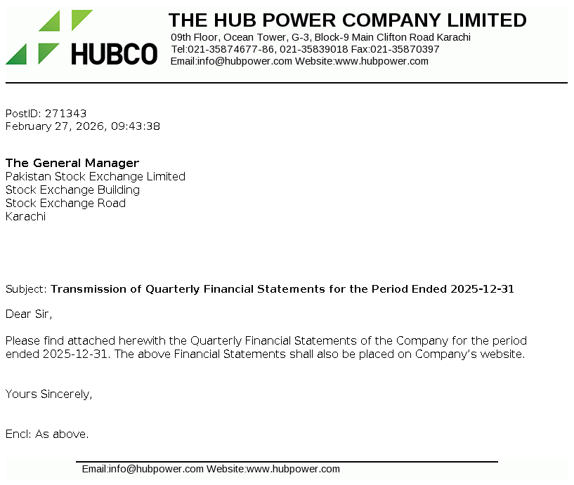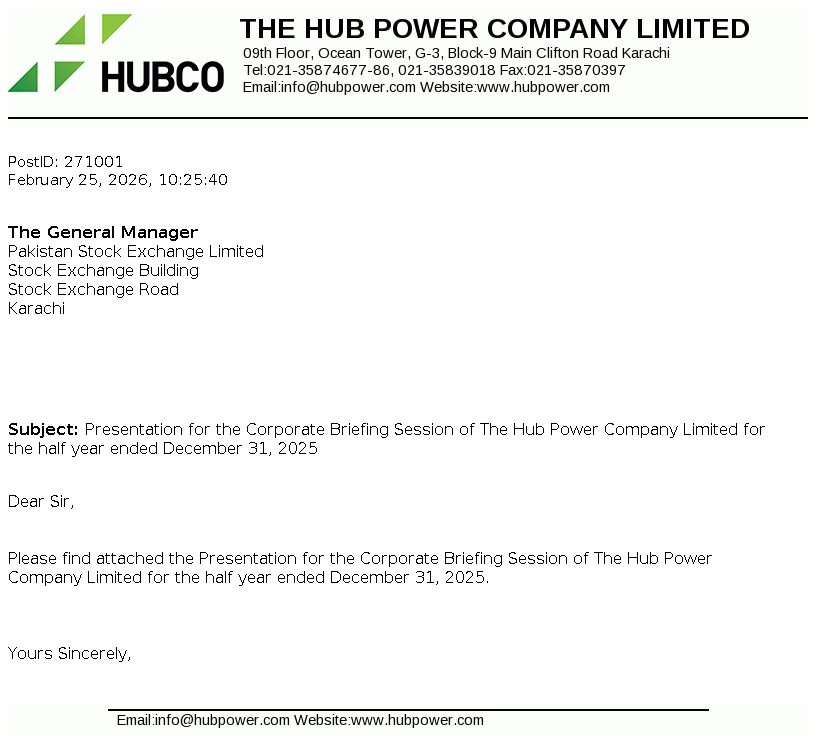 The Hub Power Company Limited was incorporated in Pakistan on August 1, 1991 as a public limited company. The principal activities of the Company are to develop, own, operate and maintain power stations. The Company owns an oil-fired power station of 1,200 MW (net) in Balochistan (Hub plant).