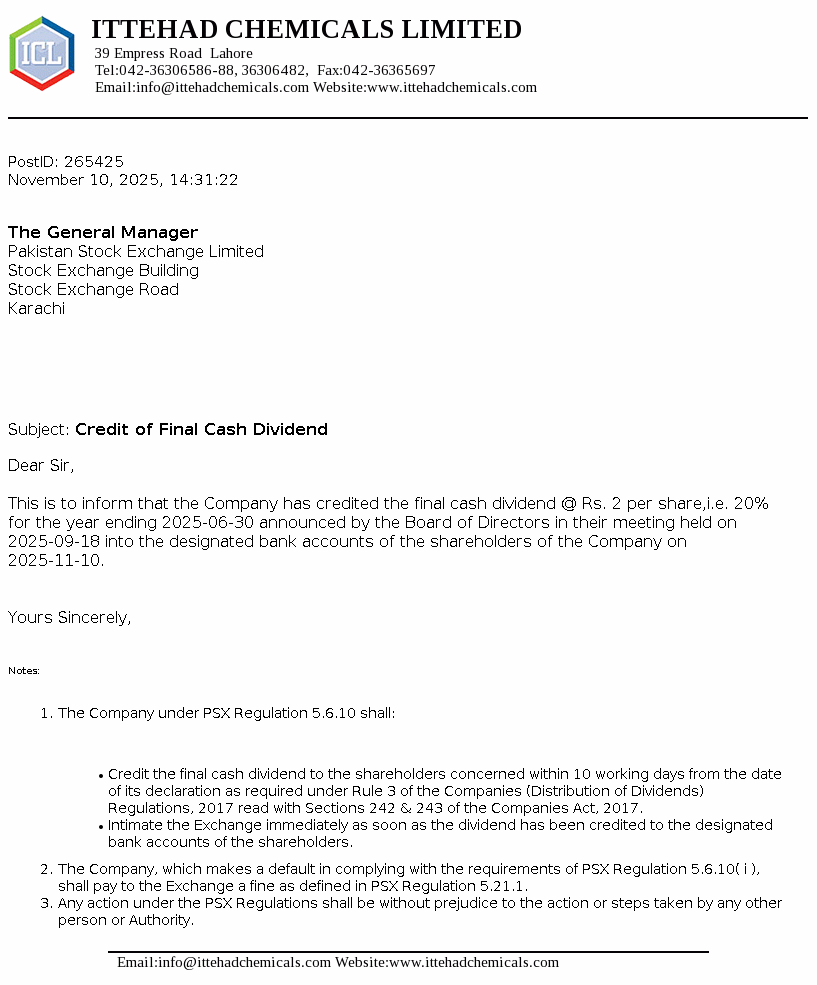 | Oct 17, 2025 | Rs. 2.00 | - |