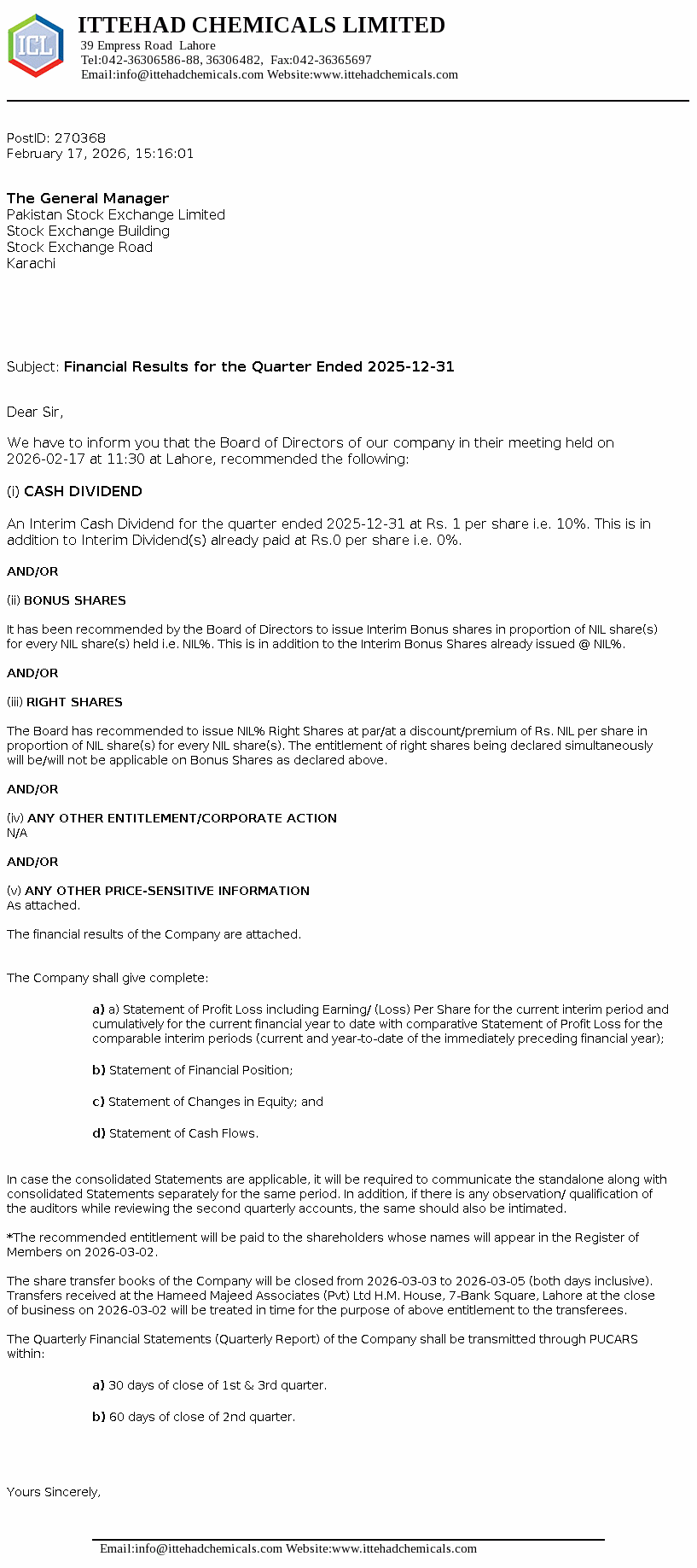| Mar 02, 2026 | Rs. 1.00 | - |