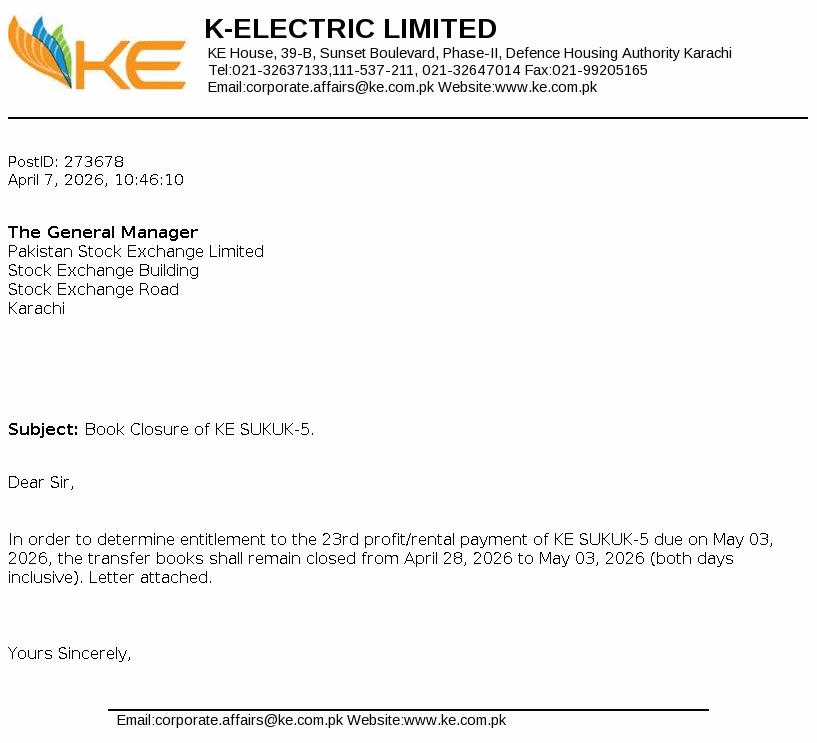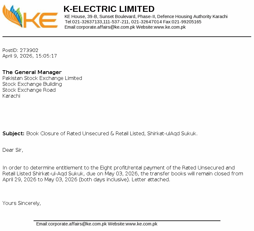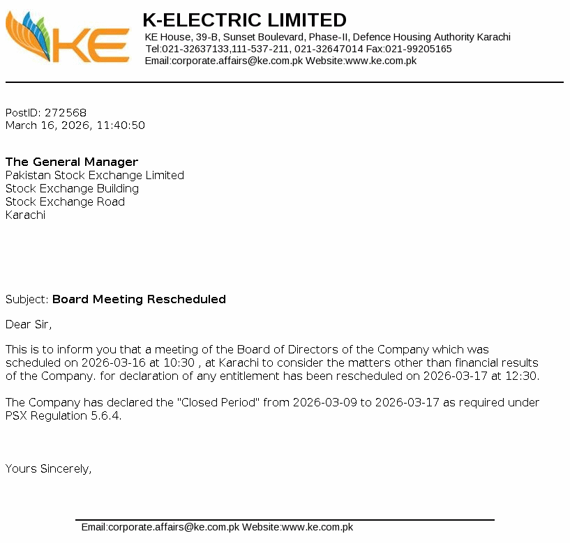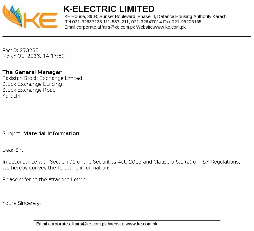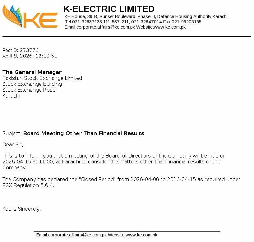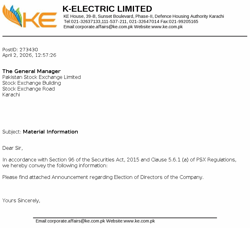 K-Electric Limited was incorporated as a limited liability company on 13 September 1913 under the repealed Indian Companies Act,1882. The Company is principally engaged in the generation, transmission and distribution of electric energy to industrial and other consumers under the Electricity Act,1910 and NEPRA Act 1997, as amended to its licensed areas. KES Power Limited is its holding company.