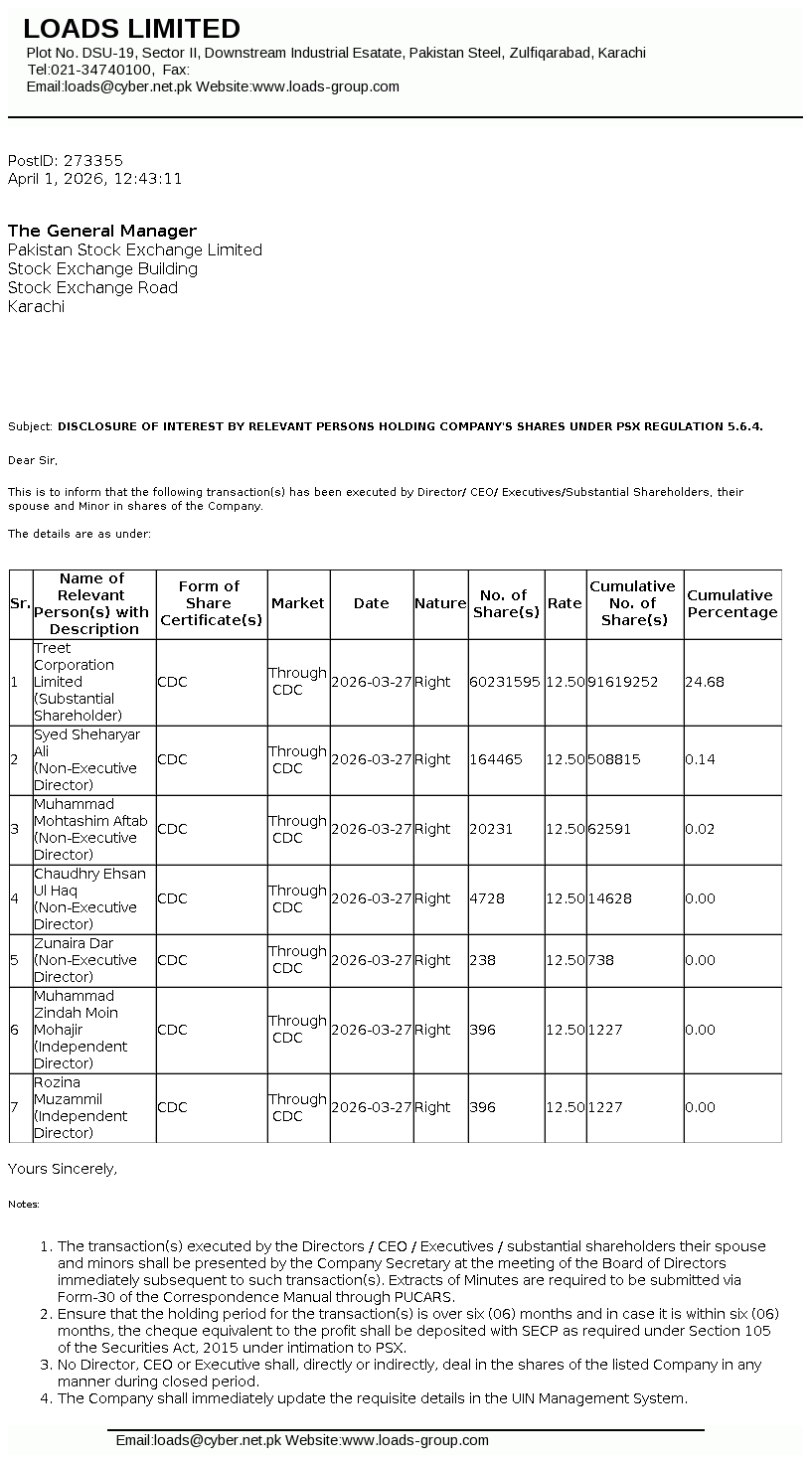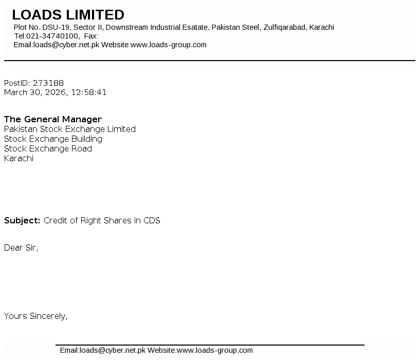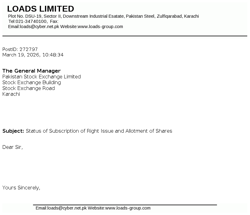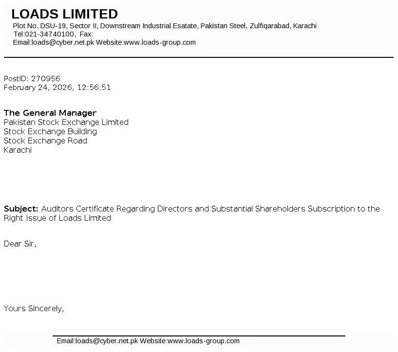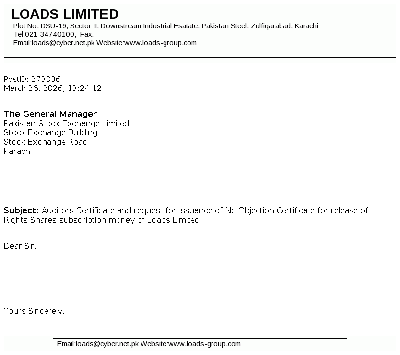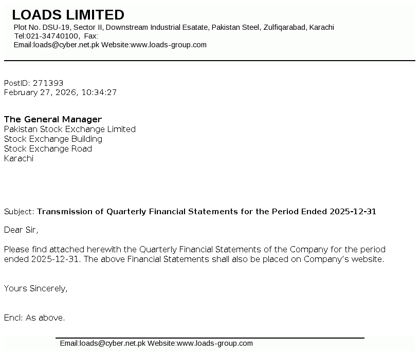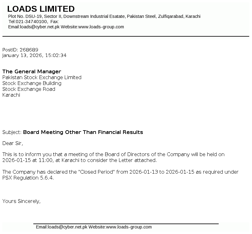 Loads Limited is a public listed company, which was incorporated in Pakistan on 1 January 1979, as a private limited company under the Companies Act, 1913. The principal activity of the Company is to manufacture and sell radiators, exhaust systems and other components for automotive industry.