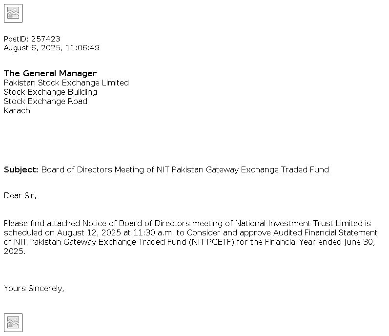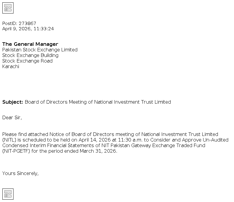 National Investment Trust Limited, 6th Floor, NBP Head Office Building, I.I. Chundrigar Road, Karachi