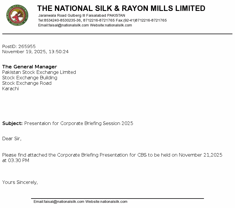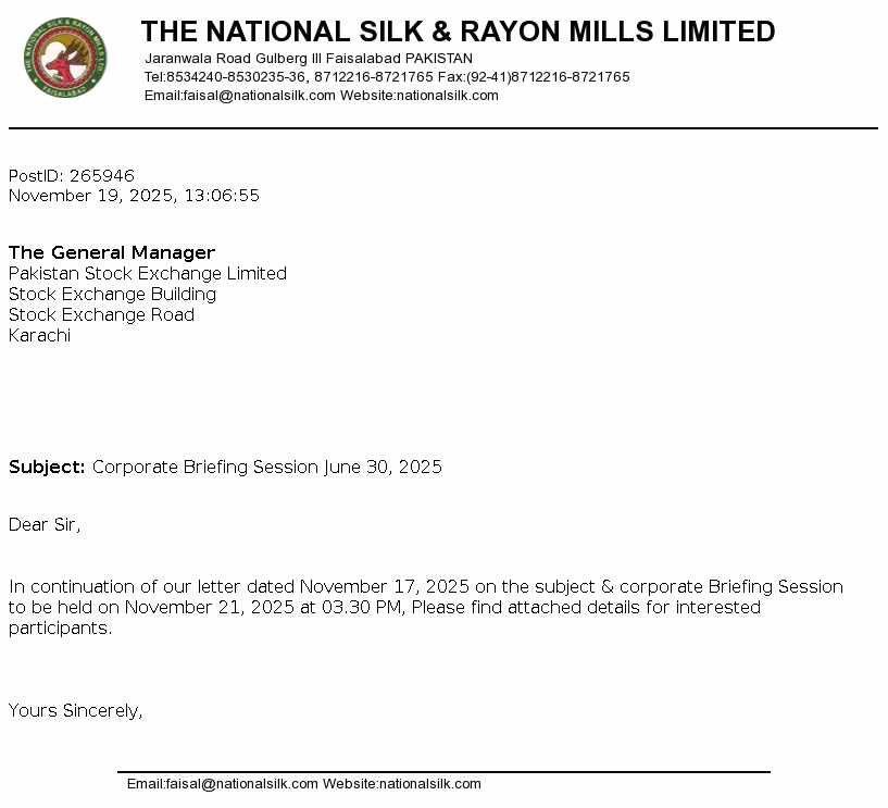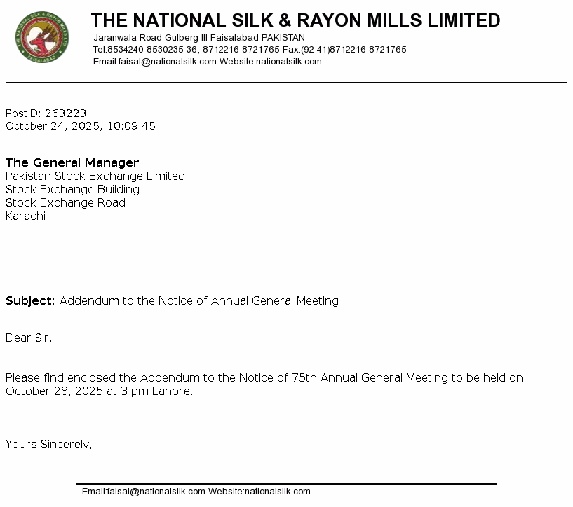 Corplink (pvt.) Ltd Share Registrar & Corporate Consultants Wings Arcade, 1-K Commercial, Model Town, Lahore.