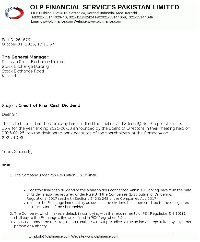 | Oct 15, 2025 | Rs. 3.50 | - |