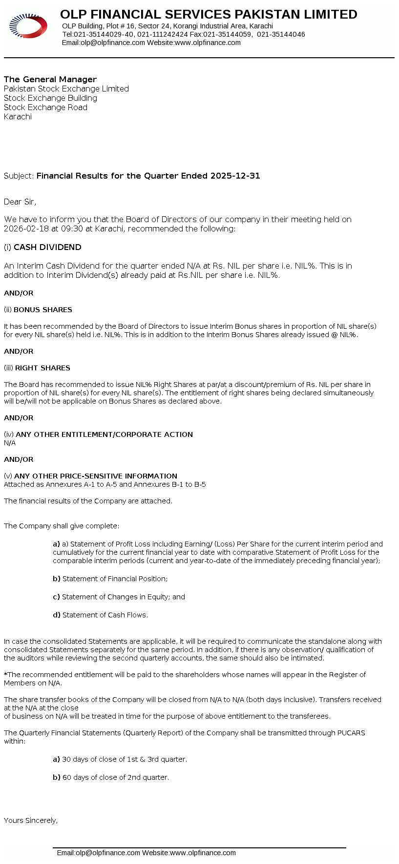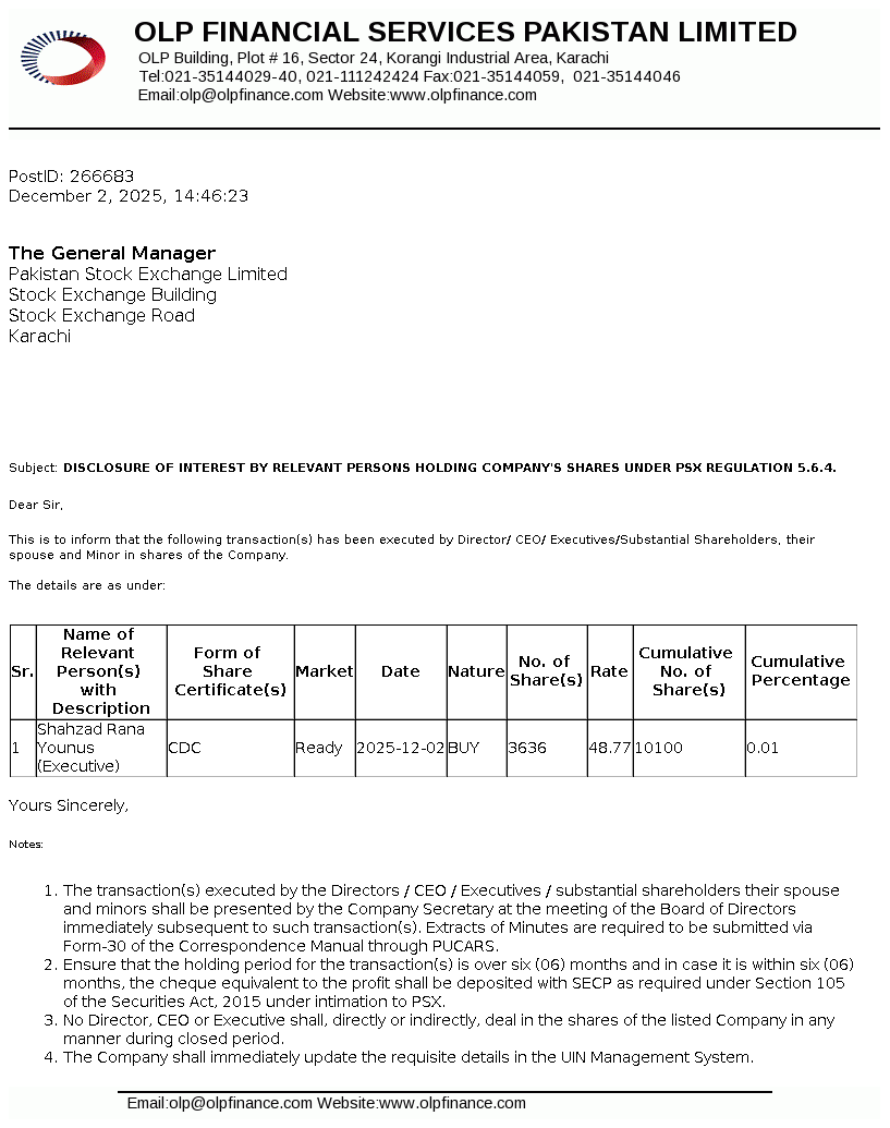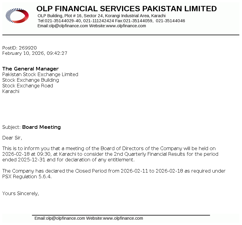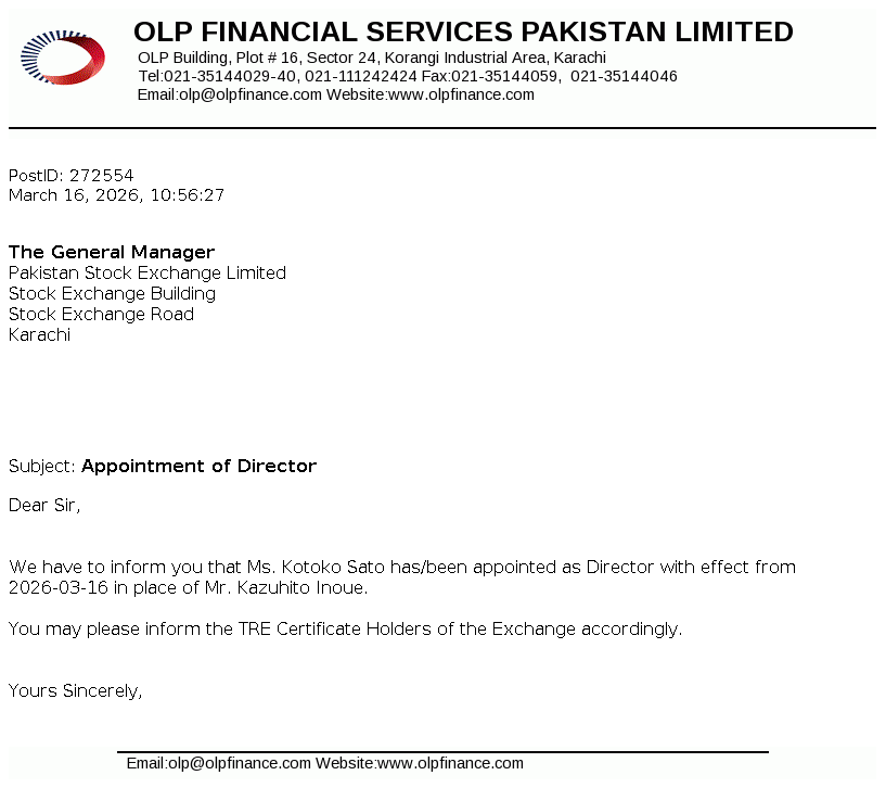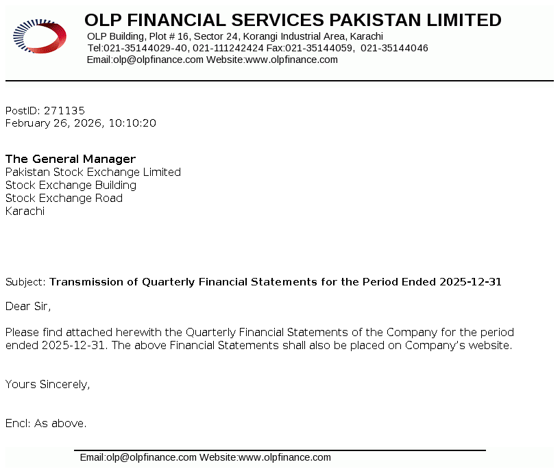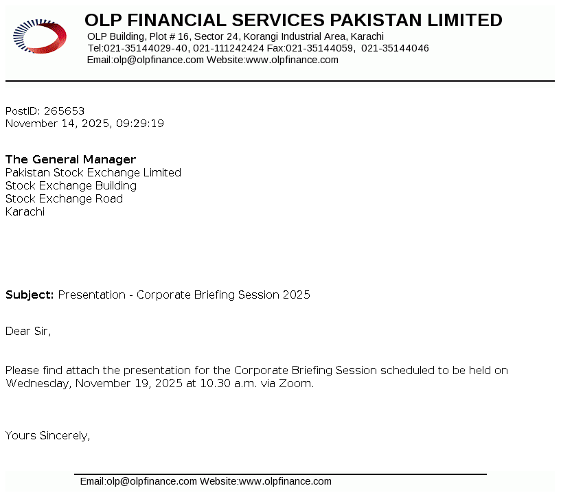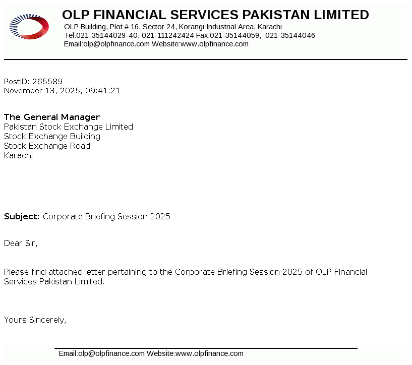 OLP Financial Services Pakistan Limited (Formerly ORIX Leasing Pakistan Limited) was incorporated in Pakistan as a private limited company on July 01, 1986 under the repealed Companies Ordinance, 1984 and was converted into a public limited company on December 23, 1987. The Company is licensed to carry out Investment Finance Services as a Non-Banking Finance Company (NBFC) under the Non-Banking Finance Companies (Establishment and Regulations) Rules, 2003 issued by the Securities and Exchange Commission of Pakistan (SECP).
