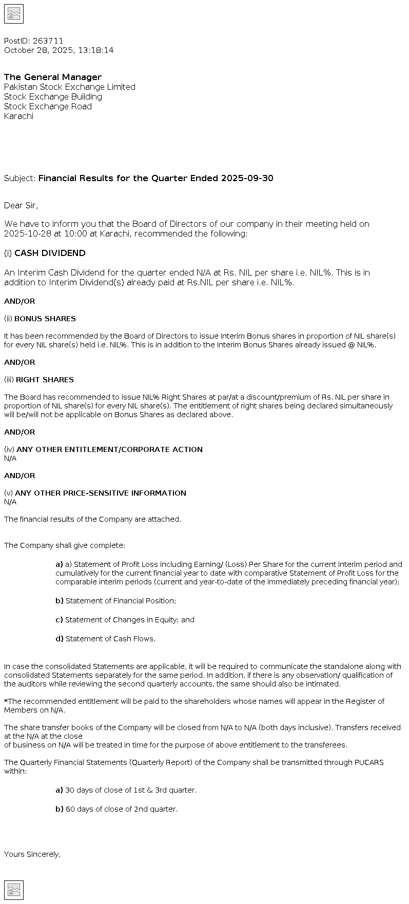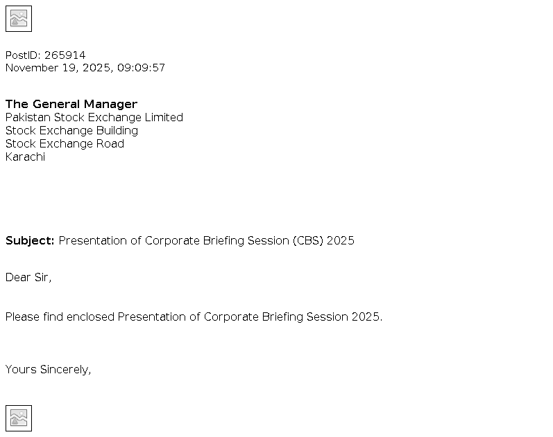 Central Depository Company of Pakistan Limited, CDC House, 99-B, Block-B, S.M.C.H.S., Main Shahrah-e-Faisal Karachi.