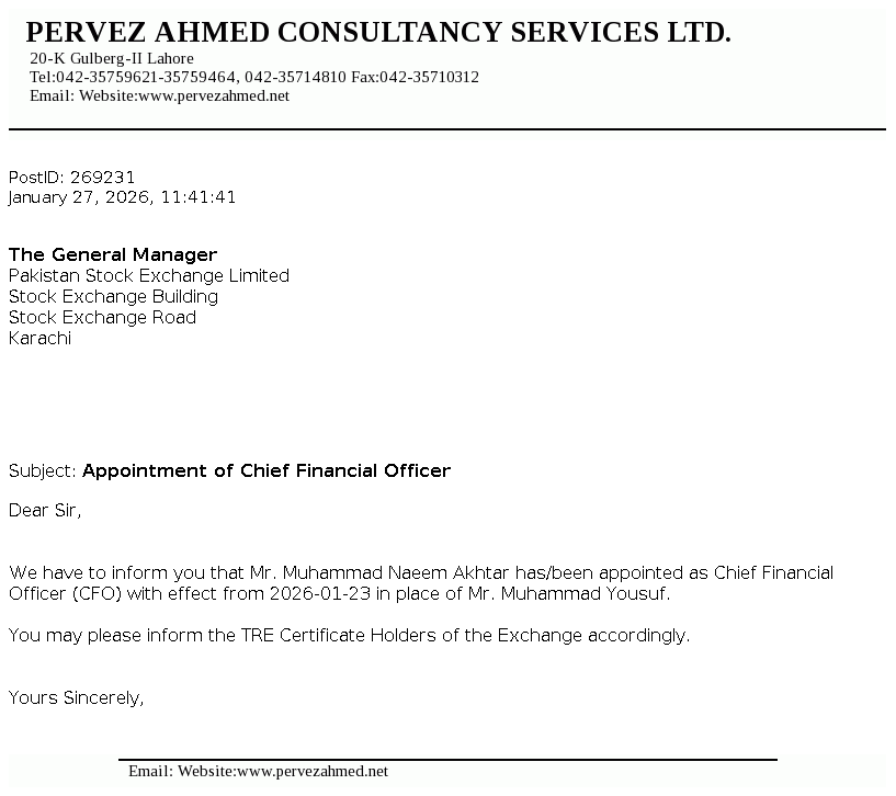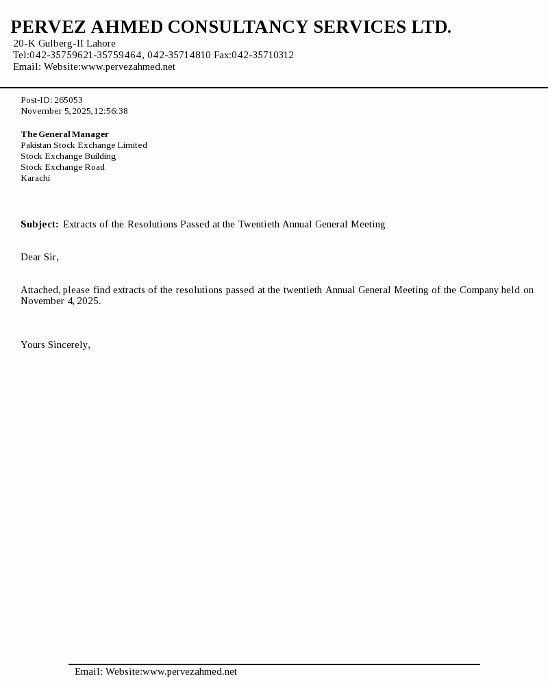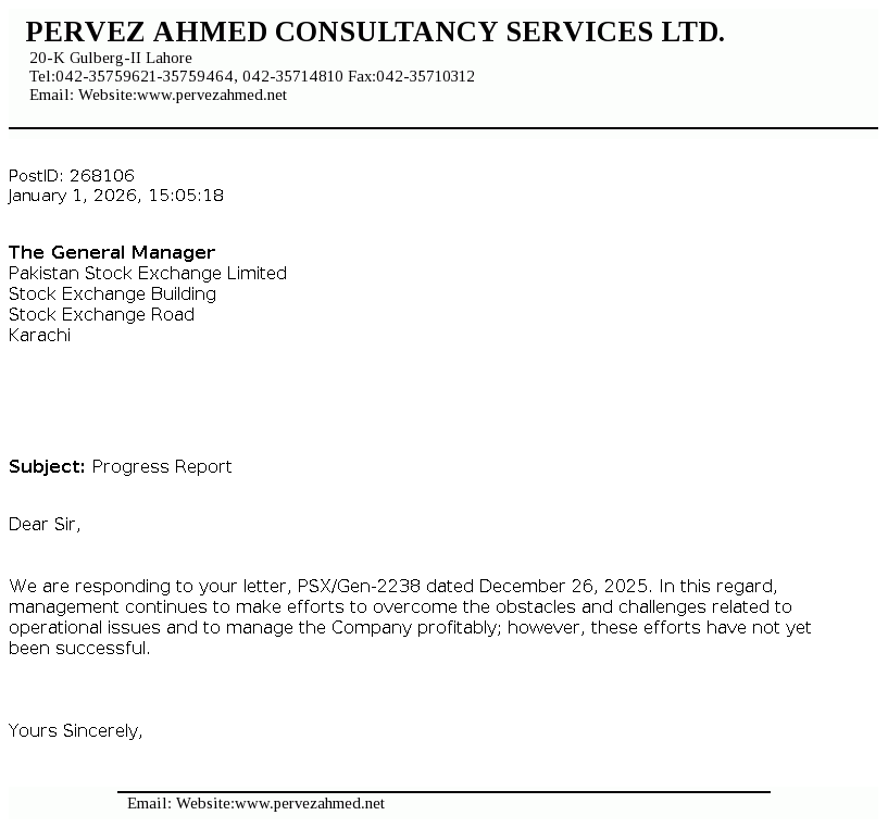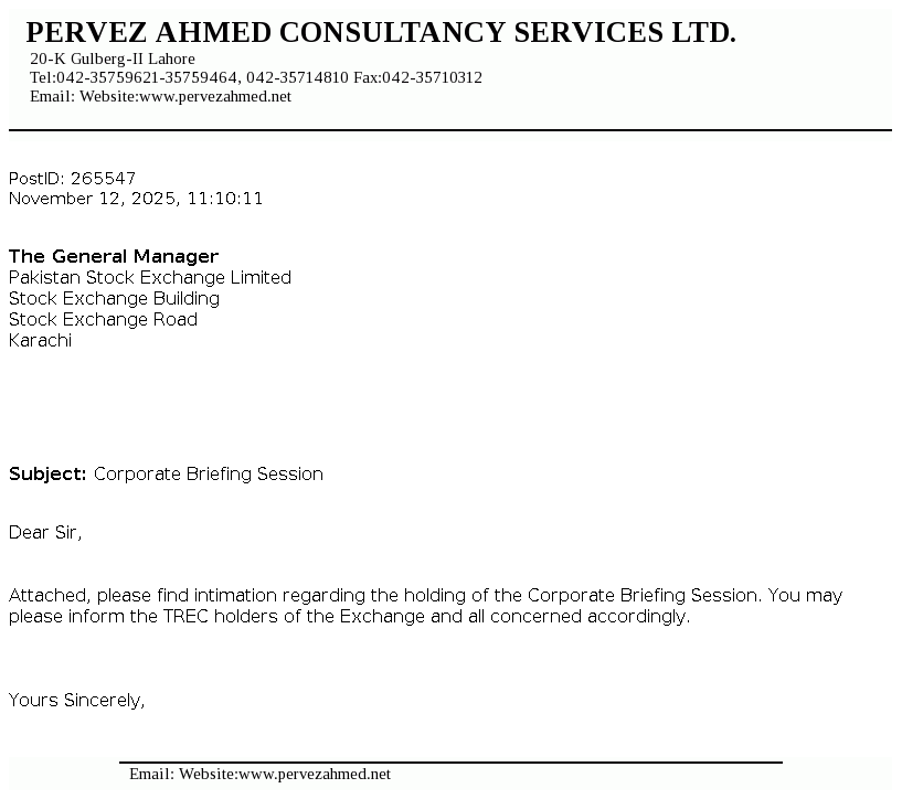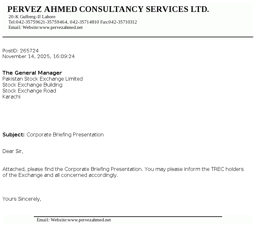 Pervez Ahmed Securities Limited was incorporated under the Companies Ordinance, 1984 on June 8, 2005 as a single member company and was listed on Karachi and Lahore Stock Exchanges on June 21, 2007. The Company was primarily a brokerage house engaged in the shares brokerage and trading, consultancy services and underwriting. However, the Company has amended its memorandum of association to change its principle activity to act as consultants and advisors.