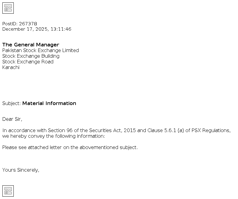 M/s CDC Share Registrar Services Limited, CDC House, 99 - B, Block B, S.M.C.H.C. Main Shahrah - e - Faisal, Karachi