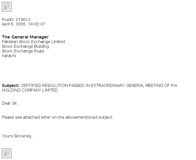 PIA Holding Company Limited (PIAHCL) is a public limited company incorporated under the laws of Pakistan and is currently majority - owned by the Government of Pakistan ("GOP"). PIAHCL has been established by the Government of Pakistan to succeed in specified assets, liabilities, and subsidiaries of Pakistan International Airlines Corporation Limited ('PIACL") including specific business, property, rights, liabilities, and obligations of PIACL.