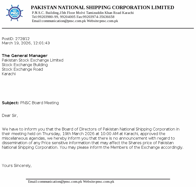 PNSC Building, Moulvi Tamizuddin Khan Road, Karachi.