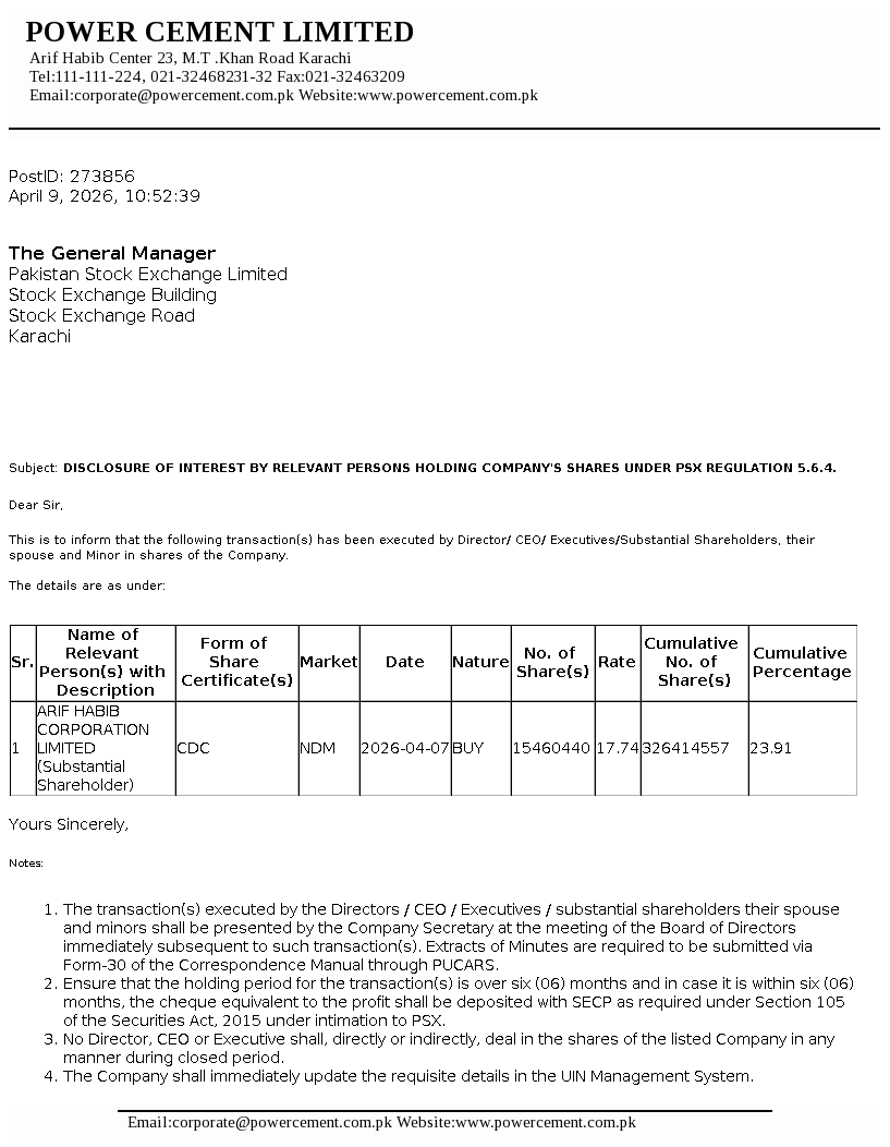 Arif Habib Centre 23 MT Khan Road, Karachi, Pakistan.