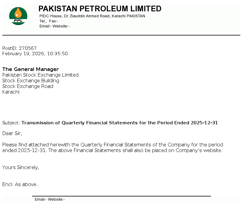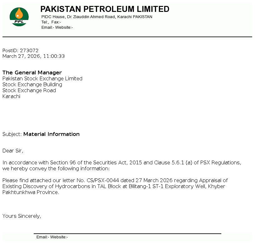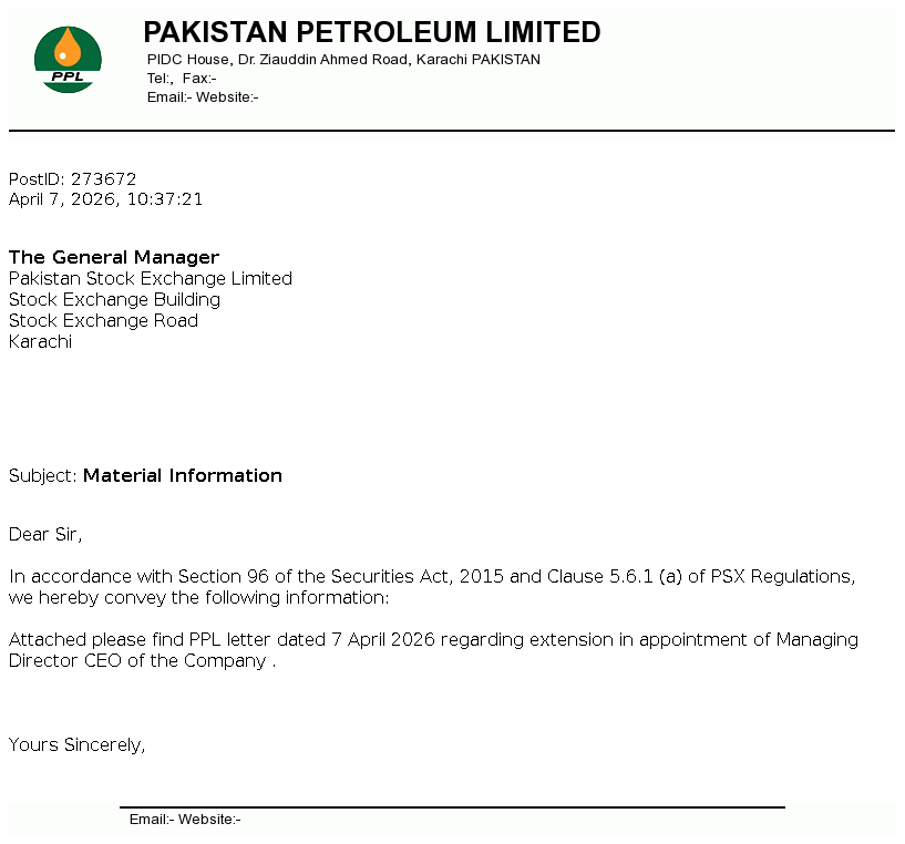 Pakistan Petroleum Limited was incorporated in Pakistan in 1950 with the main objectives of conducting exploration, prospecting, development and production of oil and natural gas resources.
