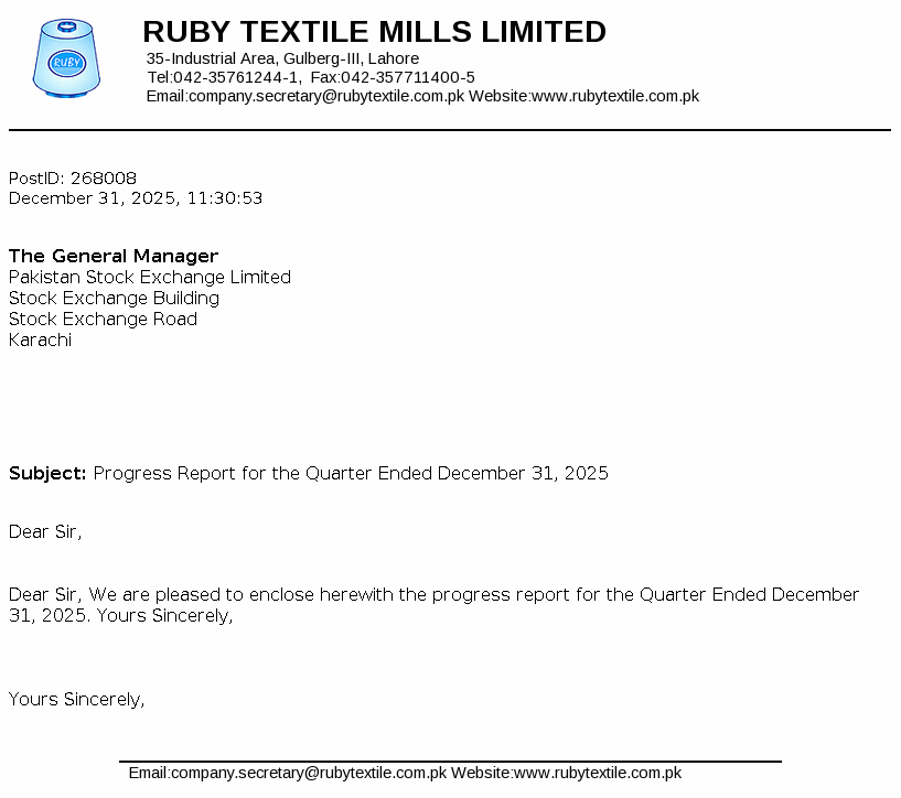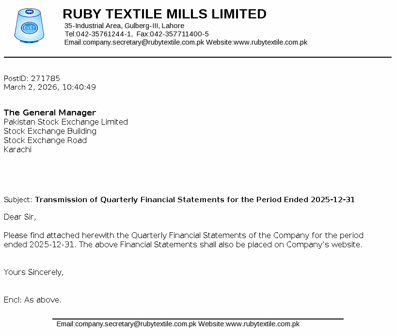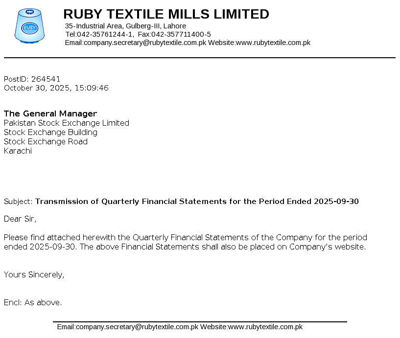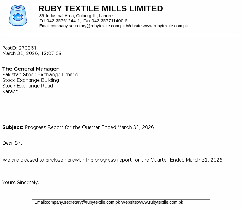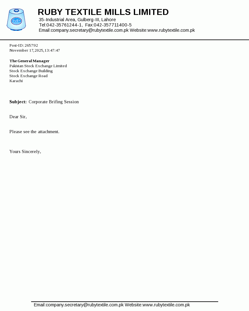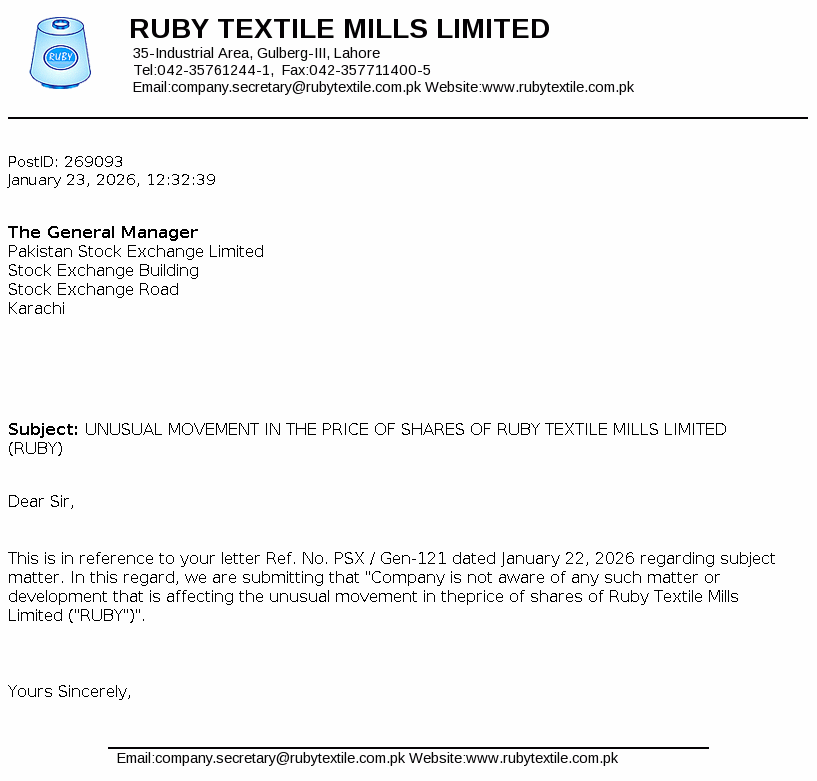 The company was incorporated in Pakistan on October 18, 1980 as a private limited company and was subsequently converted into public limited company. The principal business of the company is manufacturing and sale of yarn.