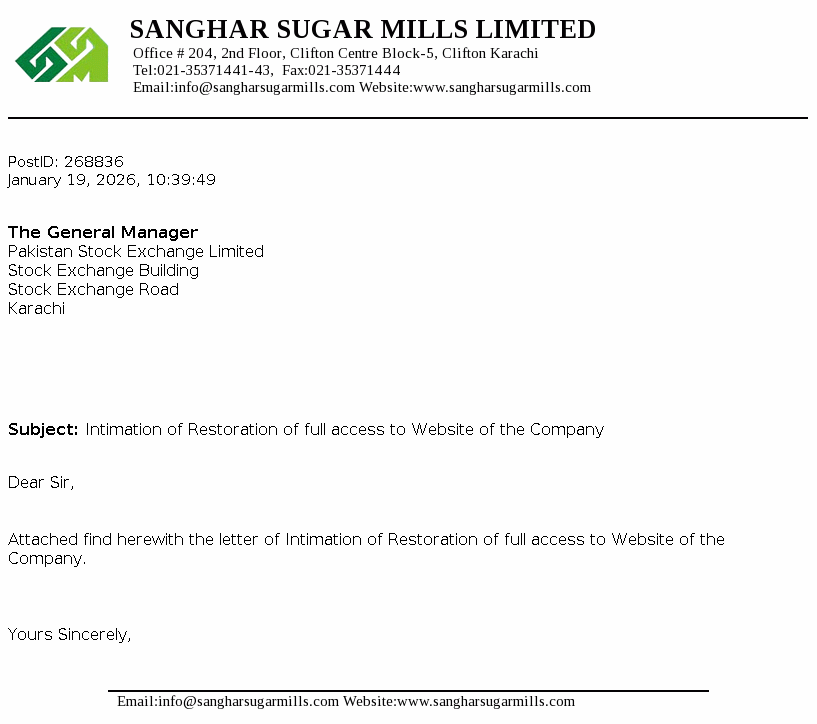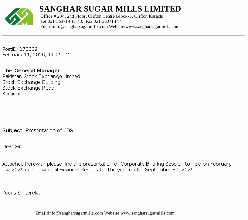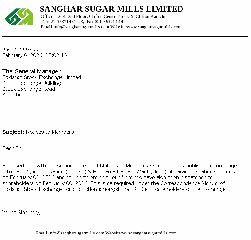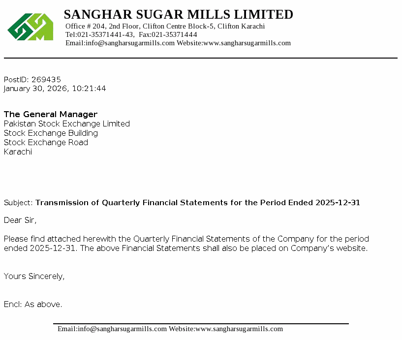 The Company is a public limited Company incorporated in 1986 in Pakistan and its shares are quotedon Pakistan Stock Exchange Limited. The Company is principally engaged in the manufacture and sale of sugar and sale of its by-products i.e. molasses and bagasse. The Company has also installed bagasse fired transmission equipment to sell surplus electric power.