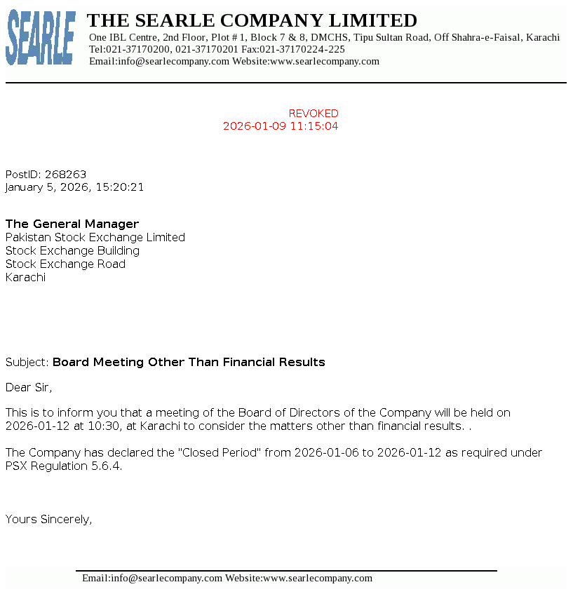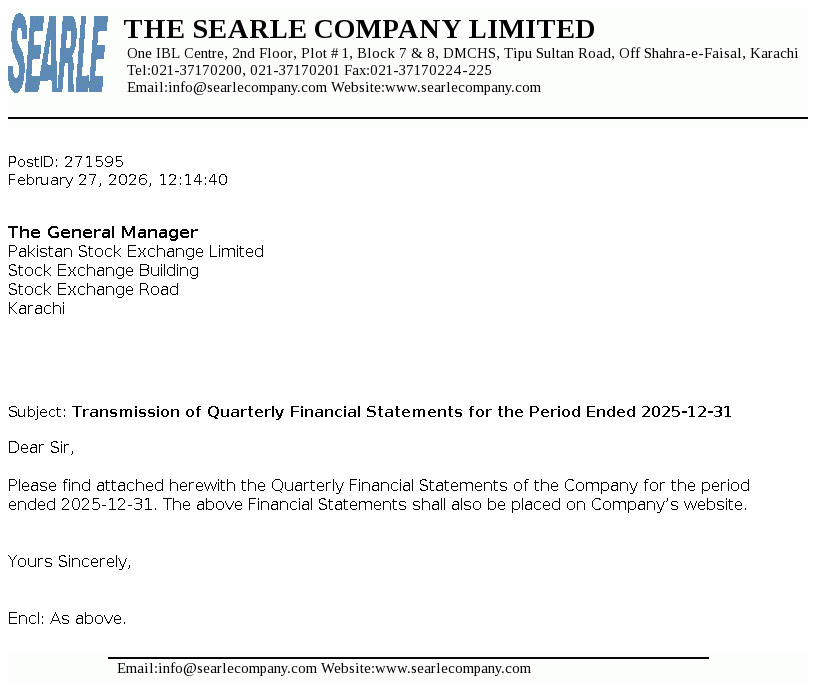 The Searle Company Limited was incorporated in Pakistan as a private limited company in October 1965. In November 1993, the Company was converted into a public limited company under the repealed Companies Ordinance, 1984 (now Companies Act, 2017). The Company is principally engaged in the manufacture of pharmaceutical and other consumer products. International Brands (Private) Limited is the Parent Company, which holds 56.32% shareholding in the Company.