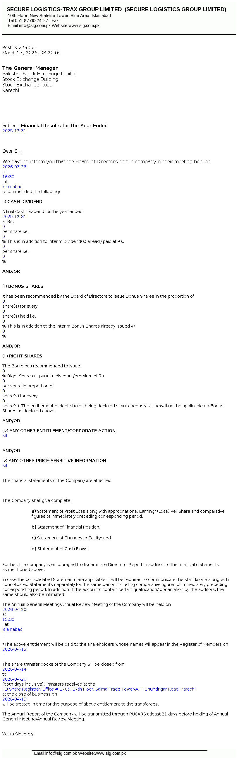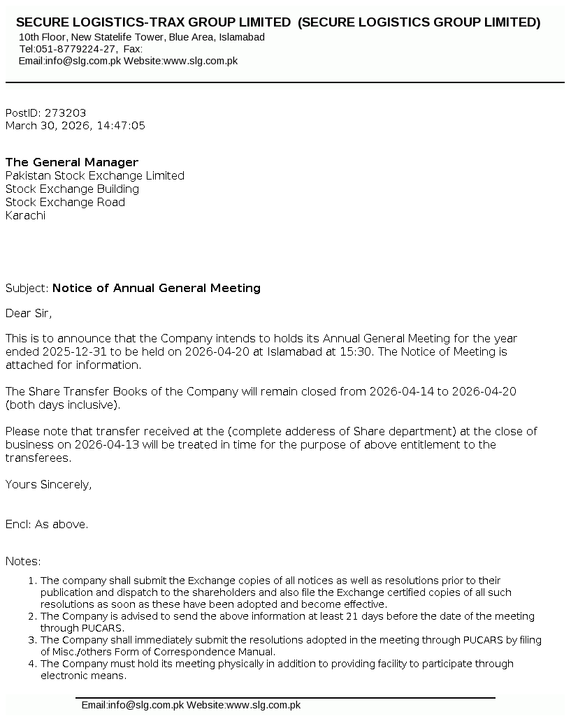 Secure Logistics Group Limited (“SLG”, “Company” or the “Issuer”), previously named as Asia Capital Partners (Pvt.) Ltd (“ACPL”), was incorporated in 2013 and acted as the Holding Company for wholly owned operational entities: (1) SecurLog (Pvt.) Ltd.; (2) Secure Track (Pvt.) Ltd.; (3) Fist Security (Pvt.) Ltd. (“FIST” or the “Subsidiary # 1” or “FSL”);(4) TDM (Pvt.) Ltd. ACPL was renamed as Secure Logistics Group Limited in August 2016 and converted to a Public Company in September, 2021