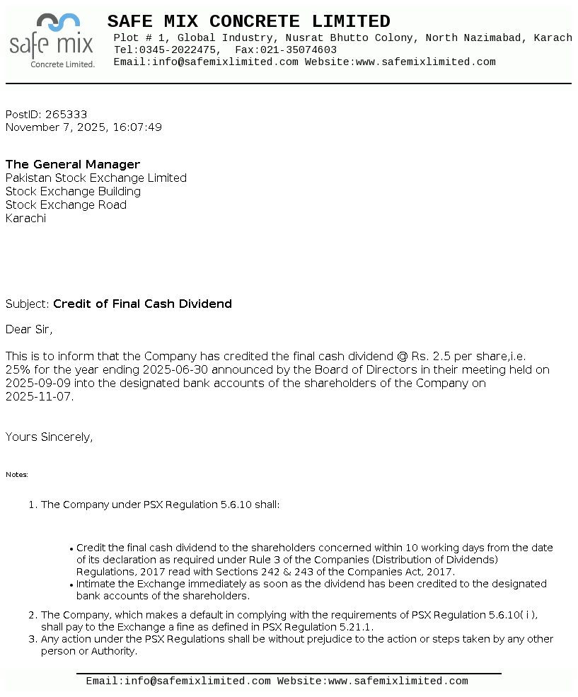 | Oct 17, 2025 | Rs. 2.50 | - |