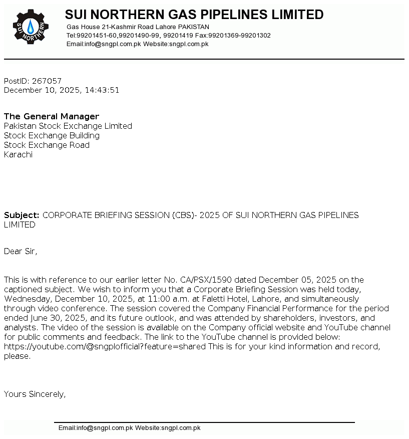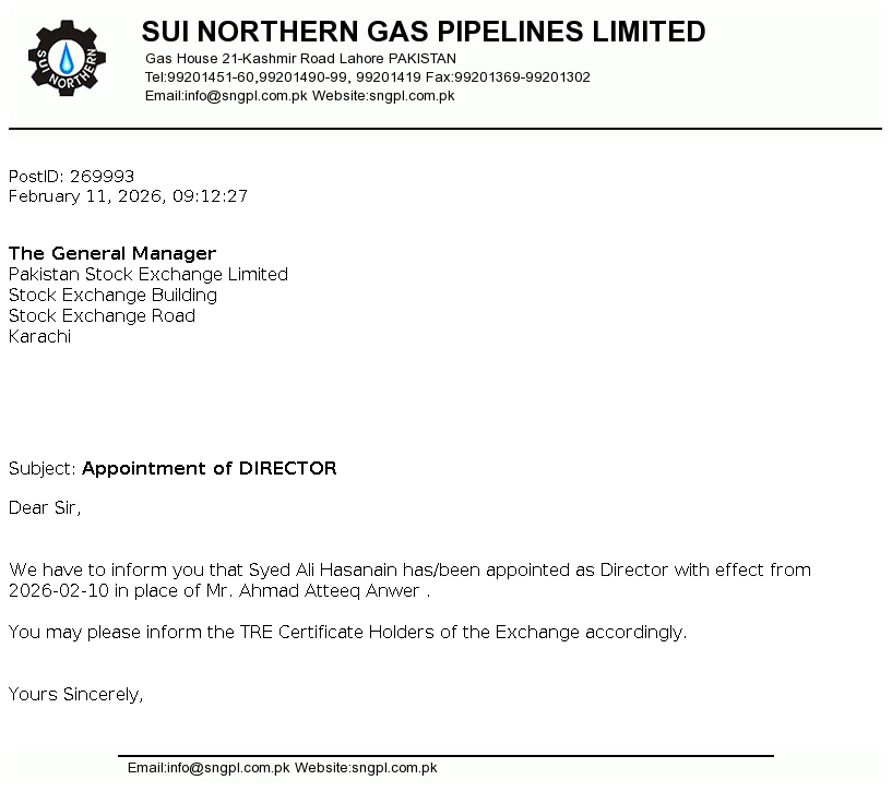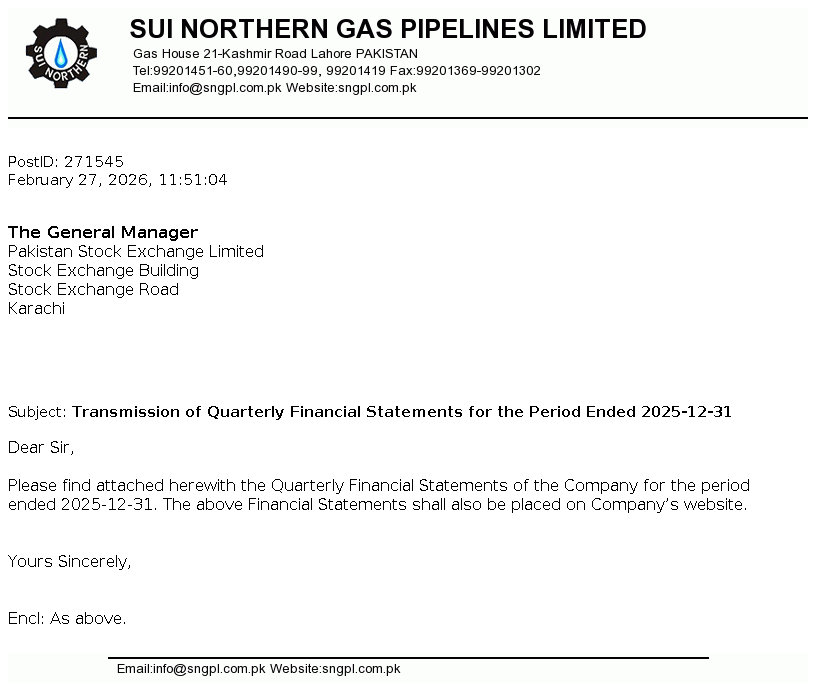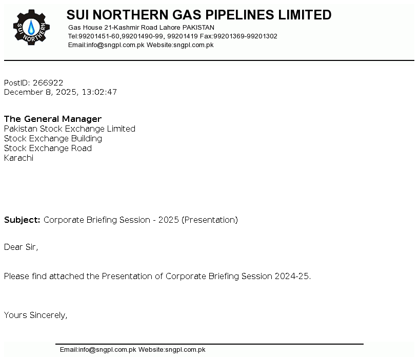 Sui Northern Gas Pipelines Limited is a public limited company incorporated in Pakistan under the Companies Act,1913 (now Companies Act, 2017). The principal activity of the Company is the purchase, transmission, distribution and supply of natural gas.