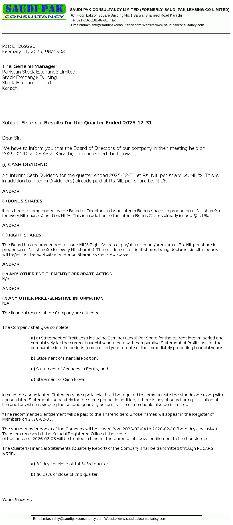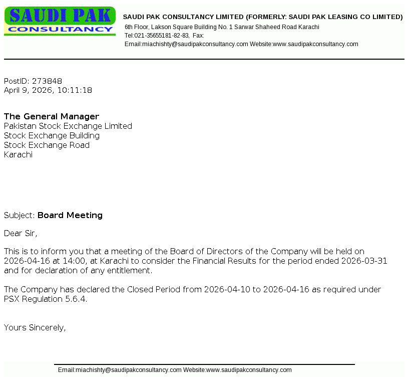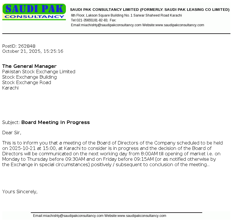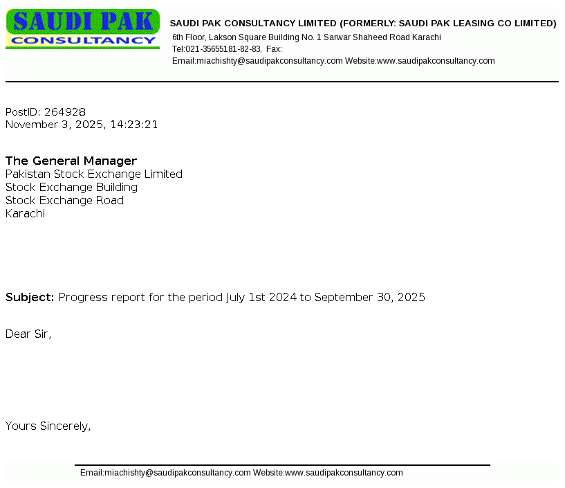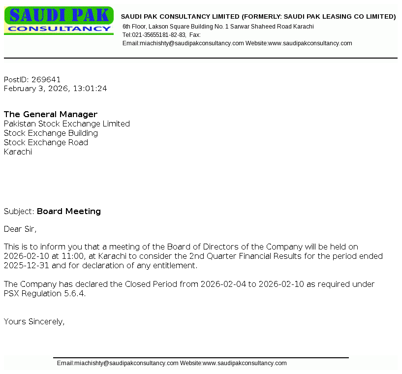 Saudi Pak Leasing Company Limited was incorporated in Pakistan on 08 January 1991 under the repealed Companies Ordinance, 1984. The main business activity of the Company is leasing of assets.