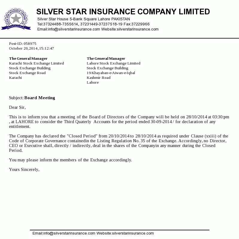 Silver Star House 5-Bank Square Lahore