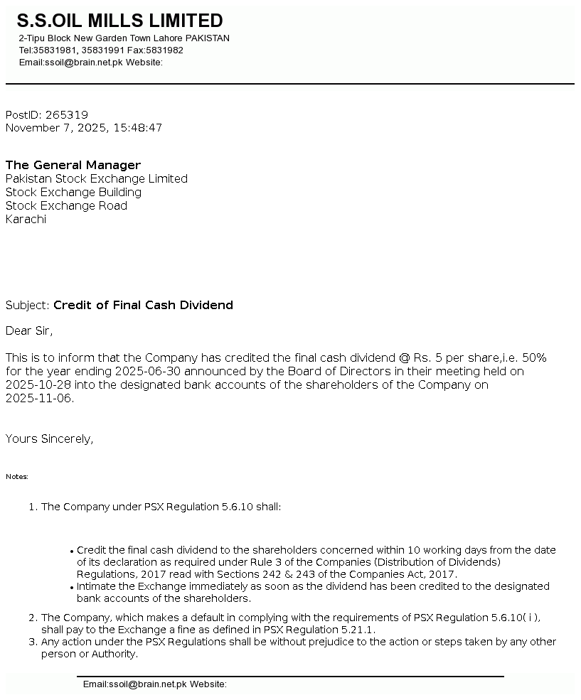 | Oct 20, 2025 | Rs. 5.00 | - |