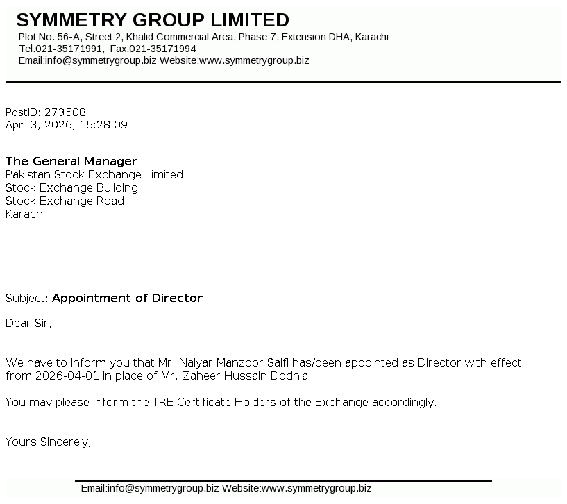Symmetry Group Limited is a Digital Technology and Experiences Company that specializes in digital products and services. From a small interactive agency in 2003, The Symmetry, a sole proprietor concern, has evolved into a group of companies (Symmetry Group Limited and its subsidiaries) providing digital solutions. In 2017, Symmetry Group (Pvt.) Limited was converted into a public unlisted company.