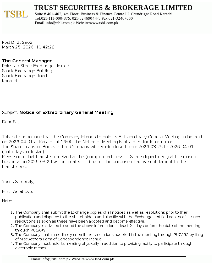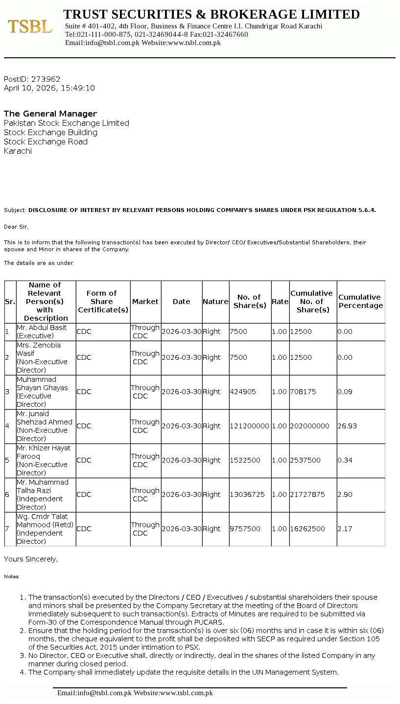 Suite : 401 4th Floor, Business & Finance Centre, I.I. Chundrigar Road, Karachi