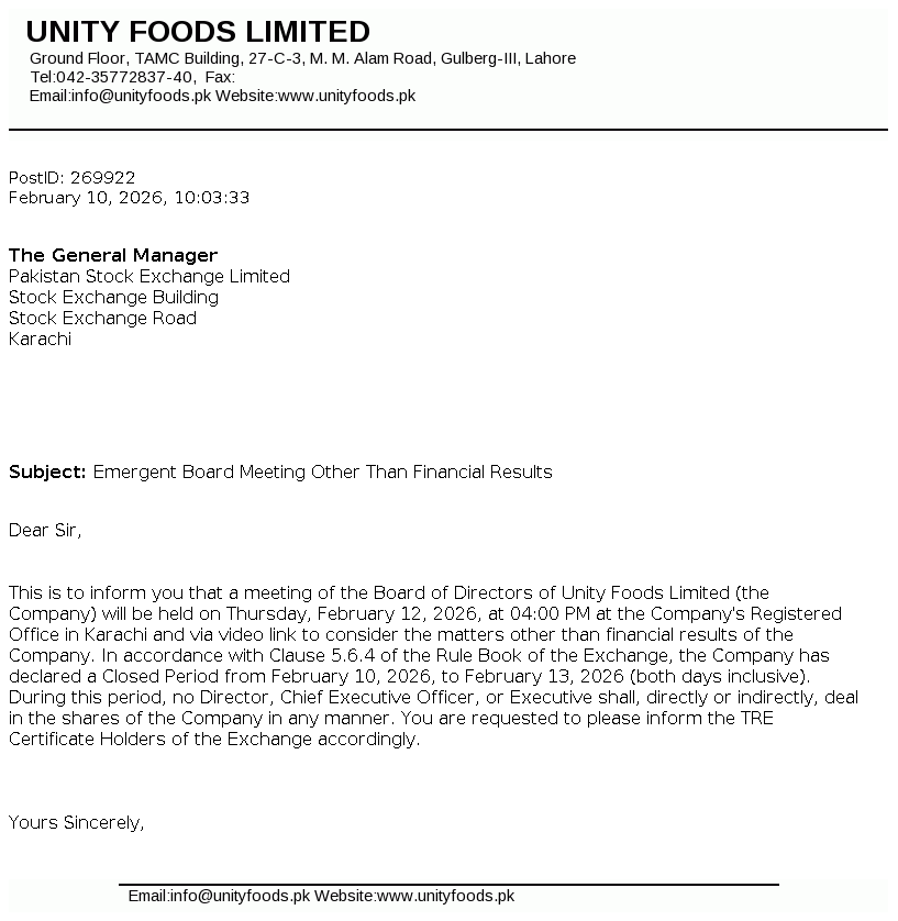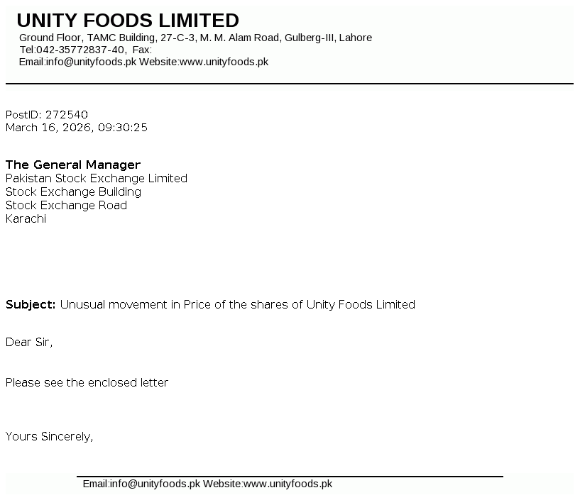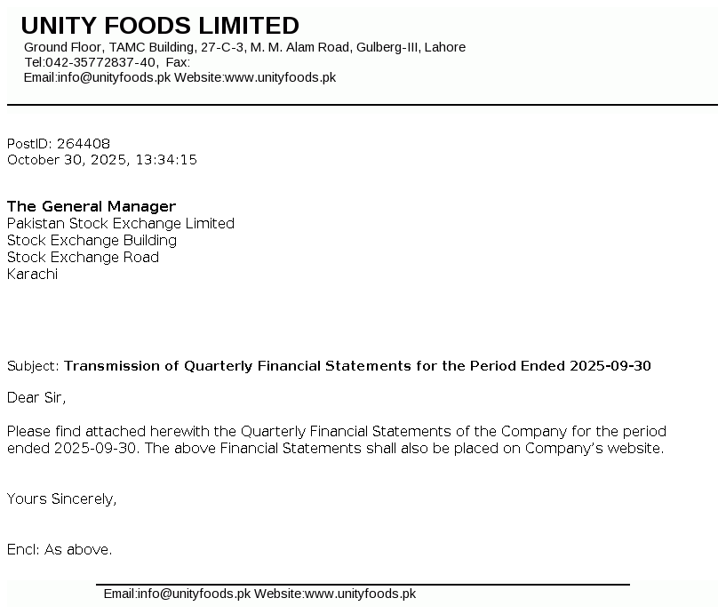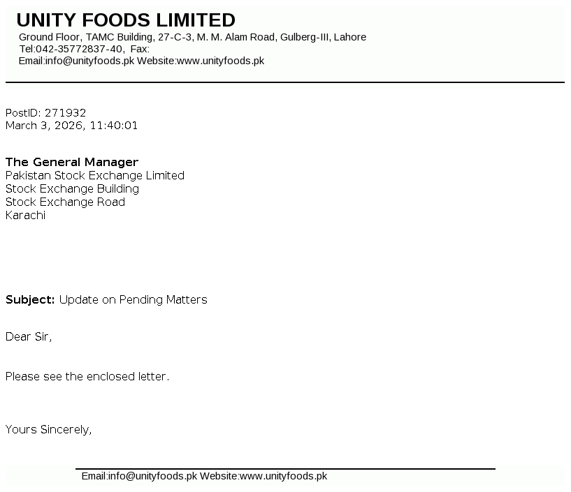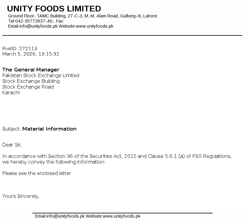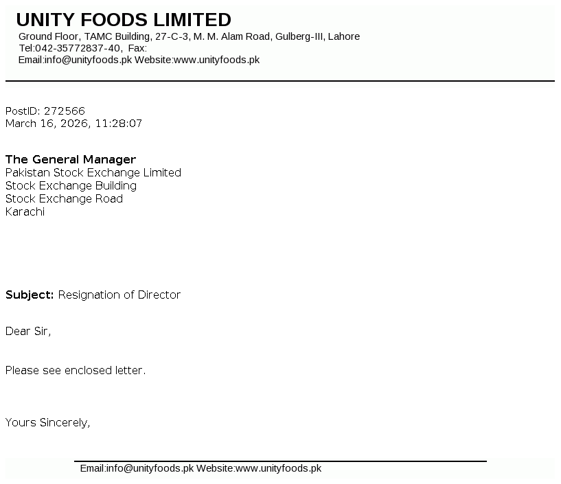 Unity Foods Limited was incorporated in Pakistan in 1991 as a Private Limited Company under the Companies Ordinance, 1984 (now Companies Act, 2017) and subsequently converted into a Public Limited Company on June 16, 1991. The principal business activity of the Company has been changed from yarn manufacturing to edible oil extraction, refining and related businesses.
