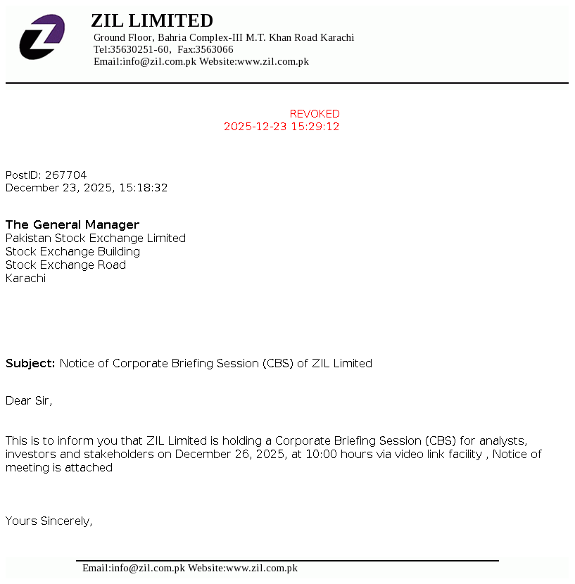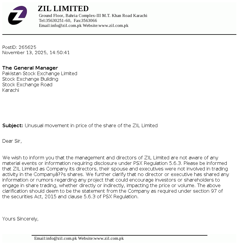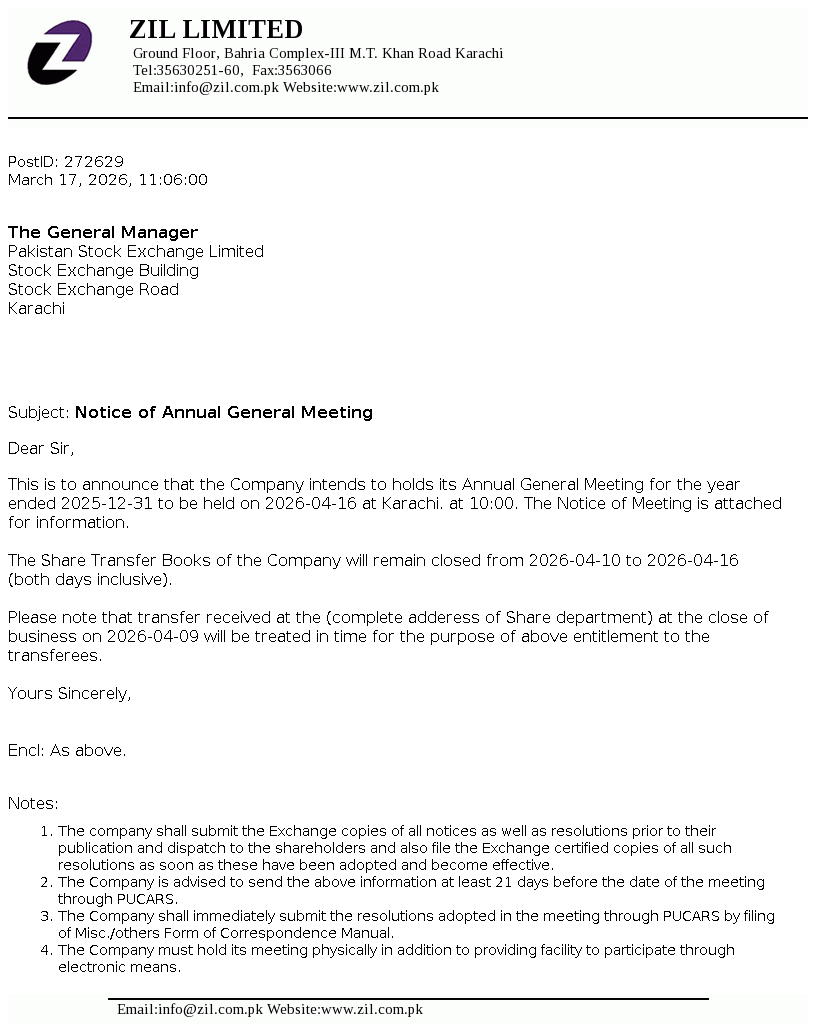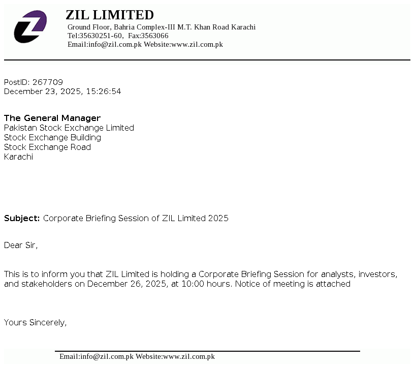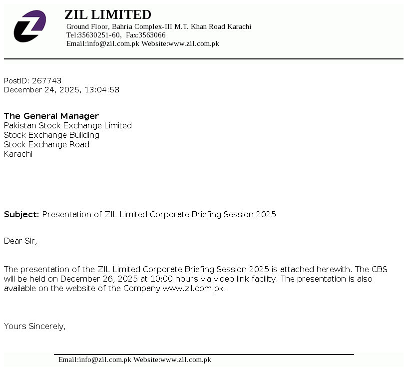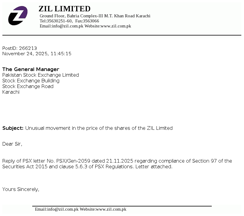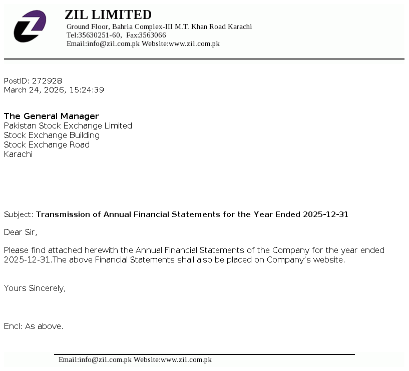ZIL Limited was incorporated as a private limited company in February 1960 under the Companies Act, 1913 (now the Companies Act, 2017) and was subsequently converted into a public limited company in November 1986. The principal activity of the Company is manufacture and sale of home and personal care products.